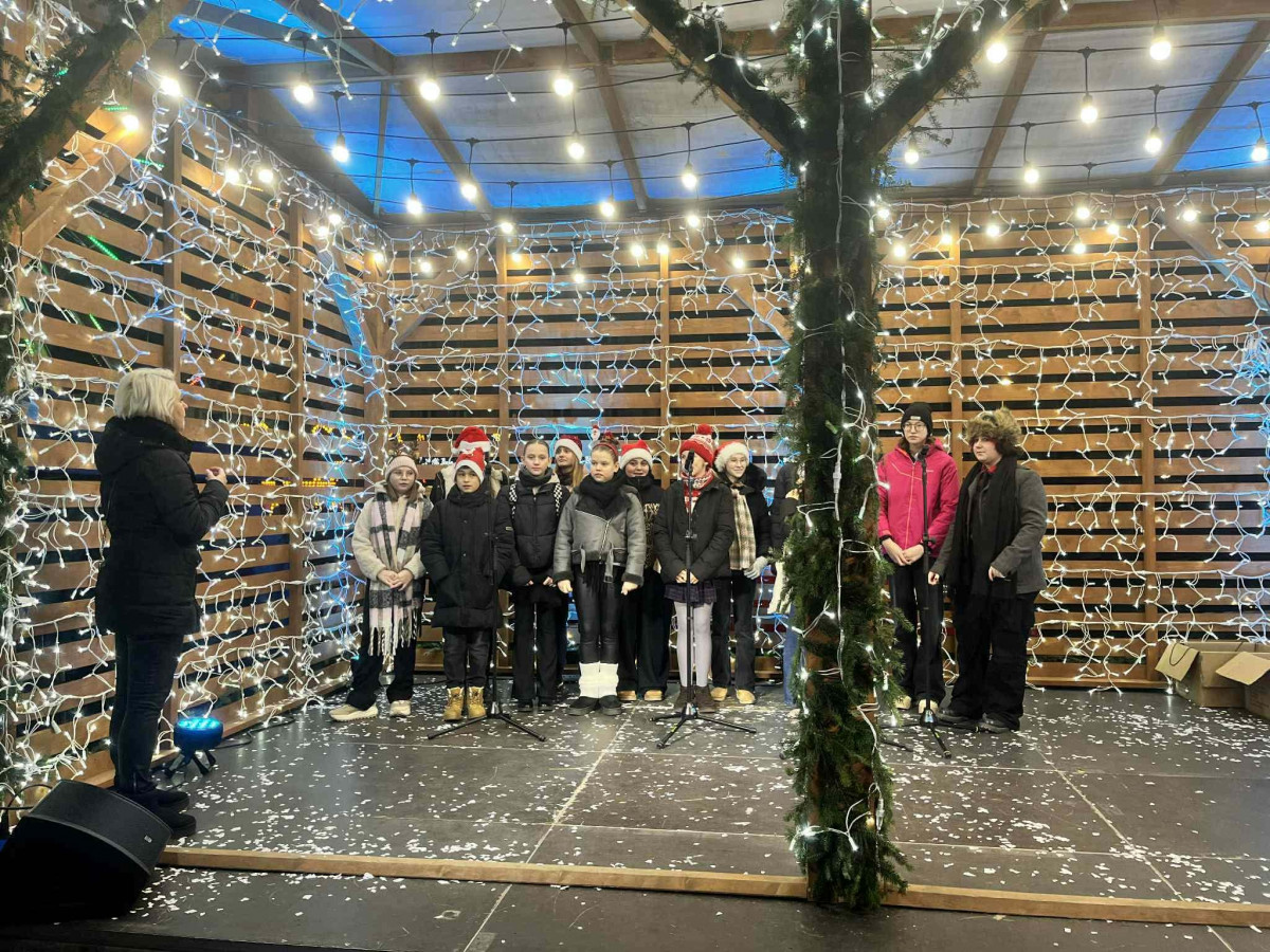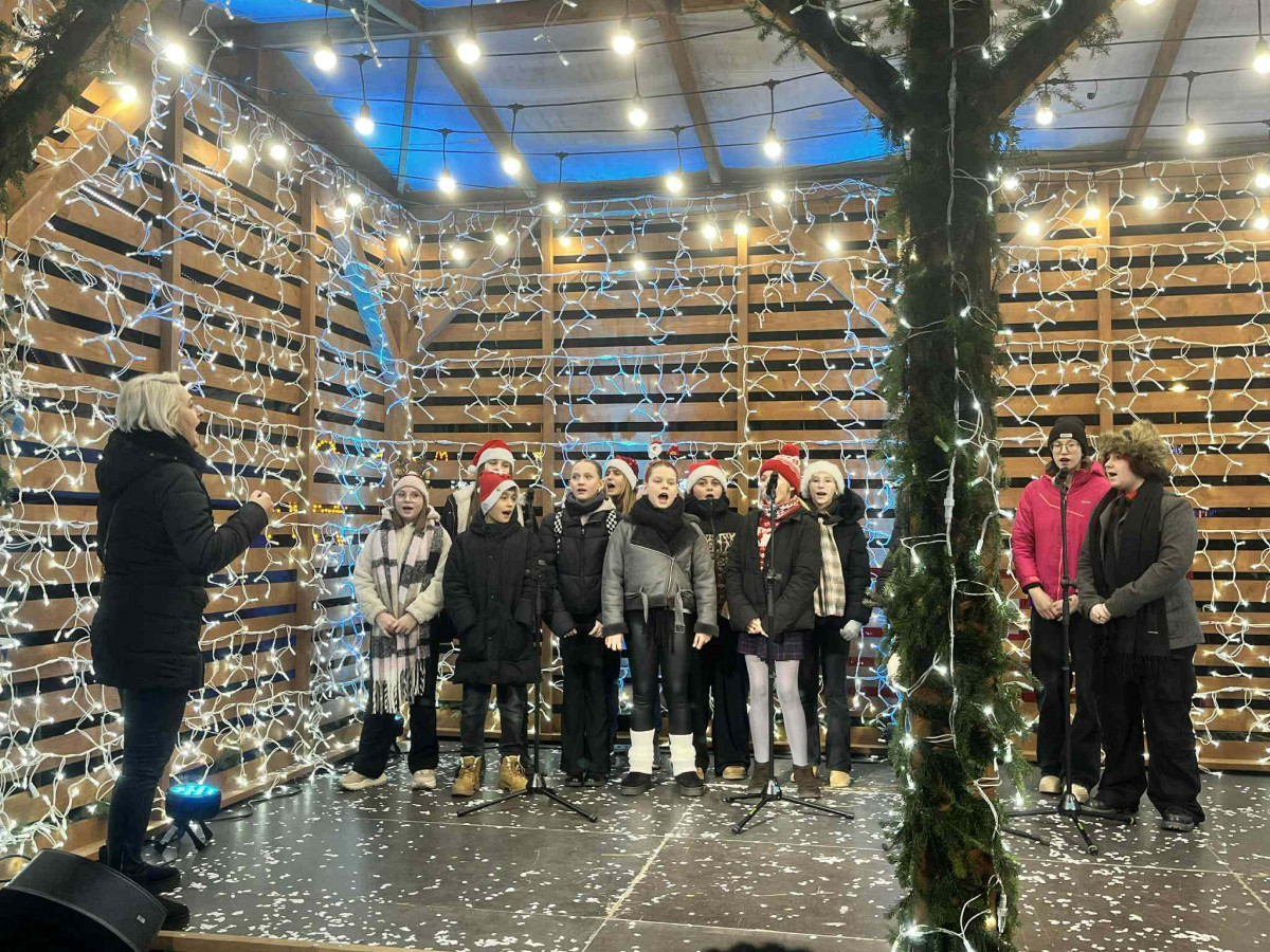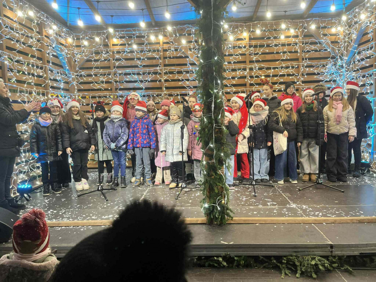 W ostatnią sobotę nasze chóry: "Piątkowe Nutki" i "Po 14" oraz chór naszych cudnych przedszkolaków zaprezentowały się na rynku w Kielcach podczas wielkiego Jarmarku Świątecznego. Uczniowie zaprezentowali najbardziej popularne kolędy w wyjątkowych aranżacjach. Chór "Piątkowe Nutki" zaśpiewał z entuzjazmem kolędę "Przybieżeli do Betlejem", która porwała wszystkich przybyłych do wtórowania naszemu chórowi. Na koniec wystąpił chór "Po 14-tej" w kolędzie "Z narodzenia Pana" w aranżacji dr Katarzyny Lisowskiej, wicedyrektor Instytutu Muzyki Uniwersytetu Jana Kochanowskiego w Kielcach. Bardzo dziękujemy wszystkim, którzy przybyli nas posłuchać.
