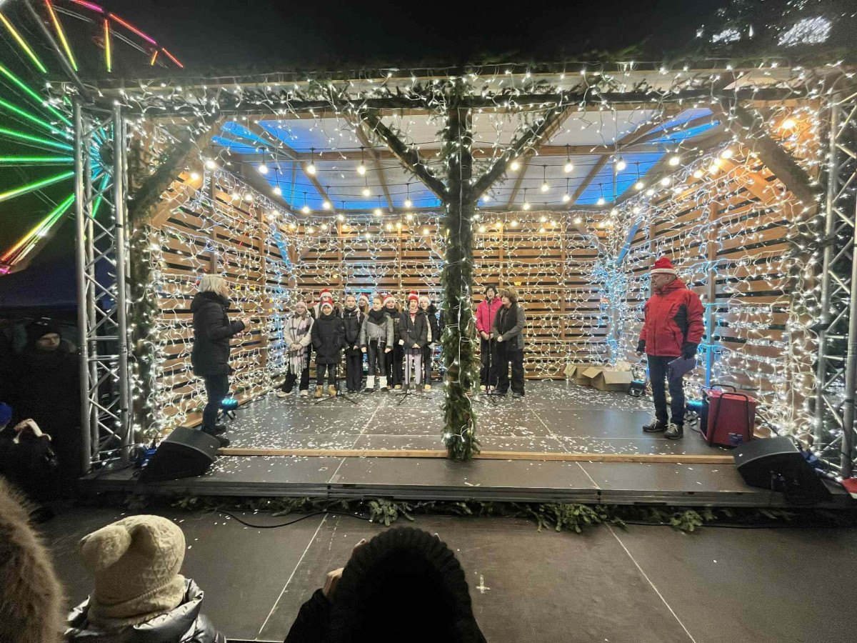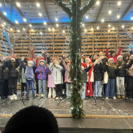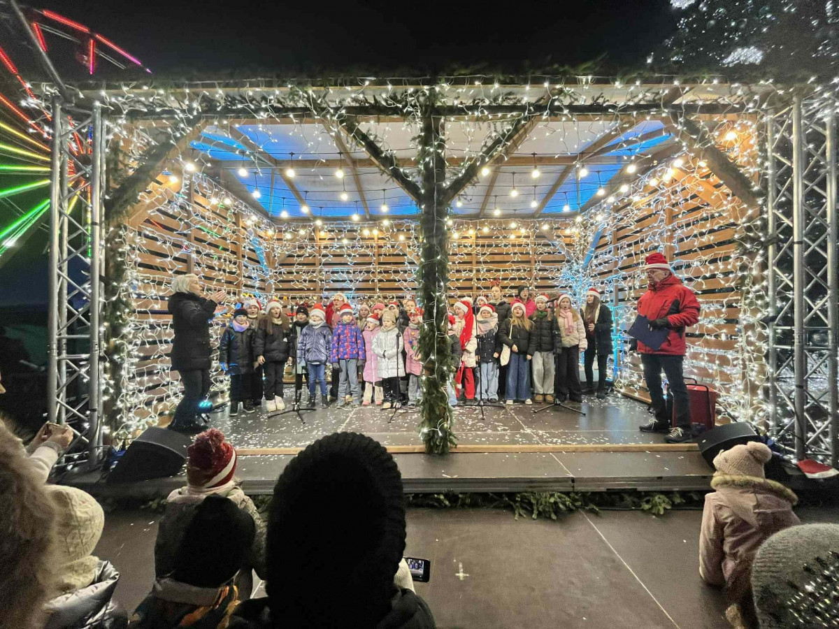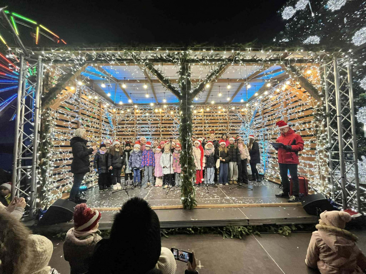 W ostatnią sobotę nasze chóry: "Piątkowe Nutki" i "Po 14" oraz chór naszych cudnych przedszkolaków zaprezentowały się na rynku w Kielcach podczas wielkiego Jarmarku Świątecznego. Uczniowie zaprezentowali najbardziej popularne kolędy w wyjątkowych aranżacjach. Chór "Piątkowe Nutki" zaśpiewał z entuzjazmem kolędę "Przybieżeli do Betlejem", która porwała wszystkich przybyłych do wtórowania naszemu chórowi. Na koniec wystąpił chór "Po 14-tej" w kolędzie "Z narodzenia Pana" w aranżacji dr Katarzyny Lisowskiej, wicedyrektor Instytutu Muzyki Uniwersytetu Jana Kochanowskiego w Kielcach. Bardzo dziękujemy wszystkim, którzy przybyli nas posłuchać.