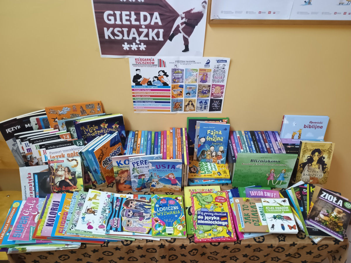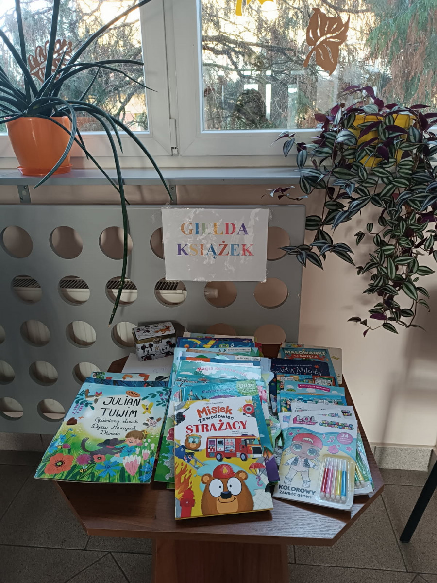 Giełda będzie trwać do 5 grudnia 2025 r. Książki wystawione są w przedszkolach, przy ul. Górniczej i przy ul. Sowiej oraz w budynku Szkoły Podstawowej przy ul. Wróblej. W prezentowanej ofercie książek/malowanek/łamigłówek, znajdują się zarówno pozycje dla młodszych jak i dla starszych odbiorców.