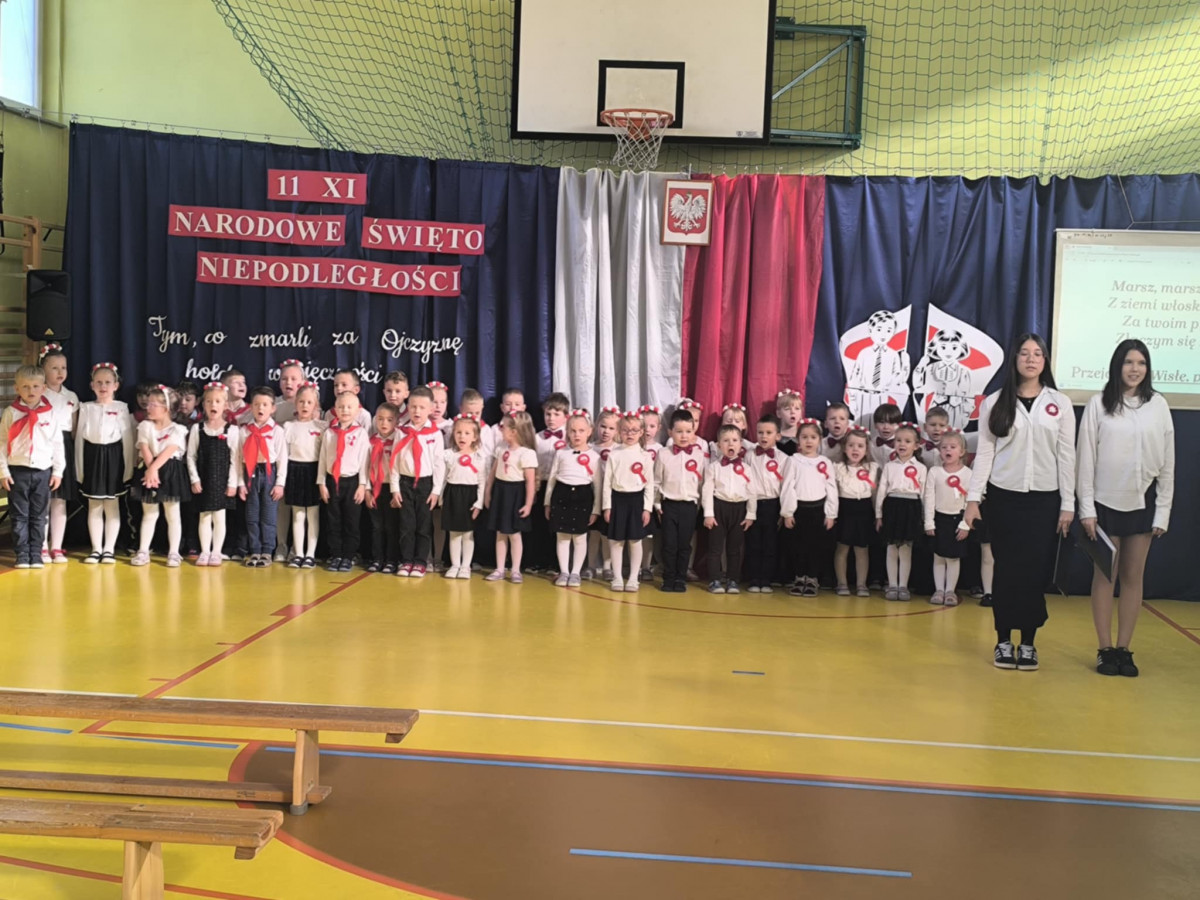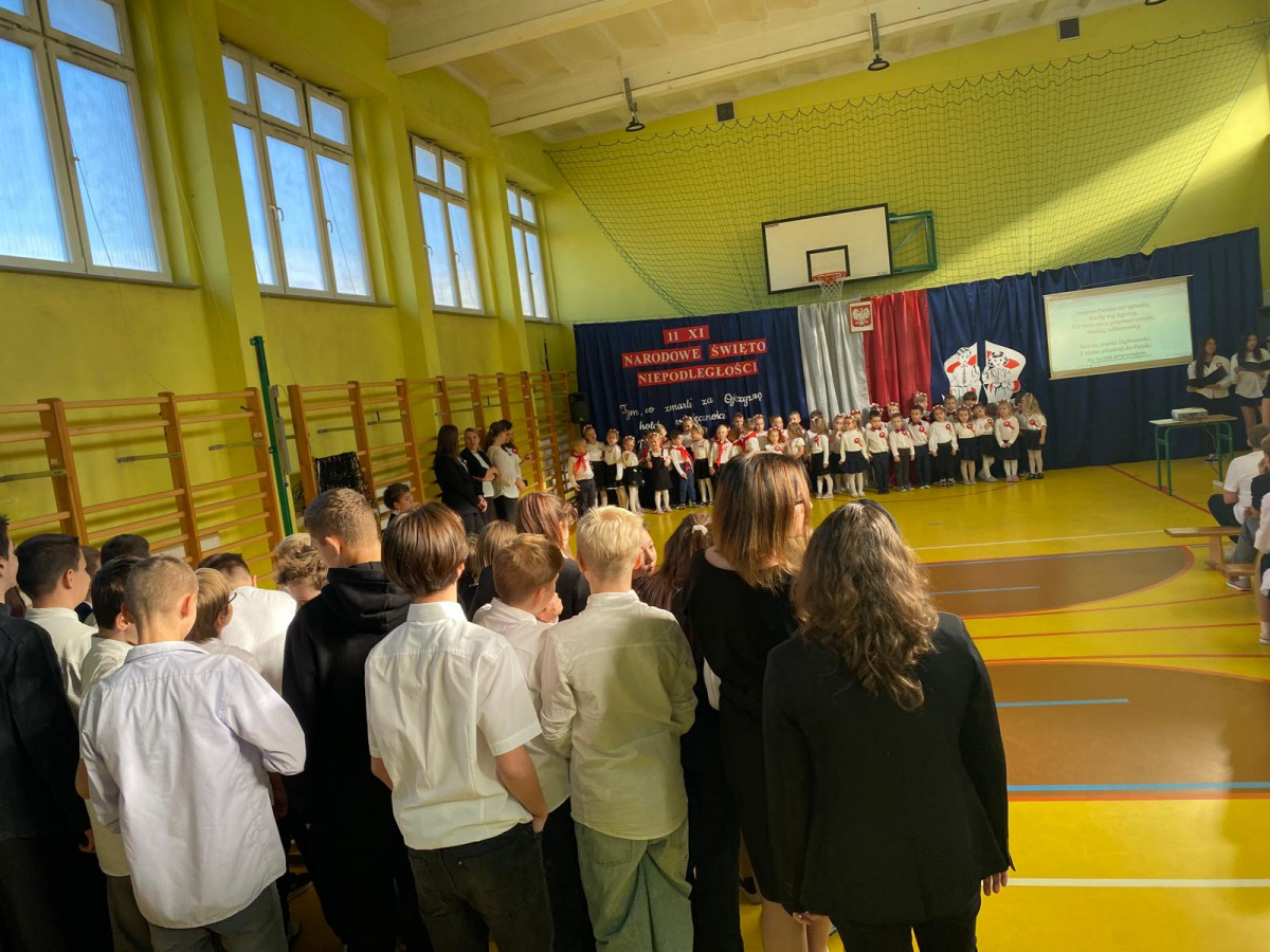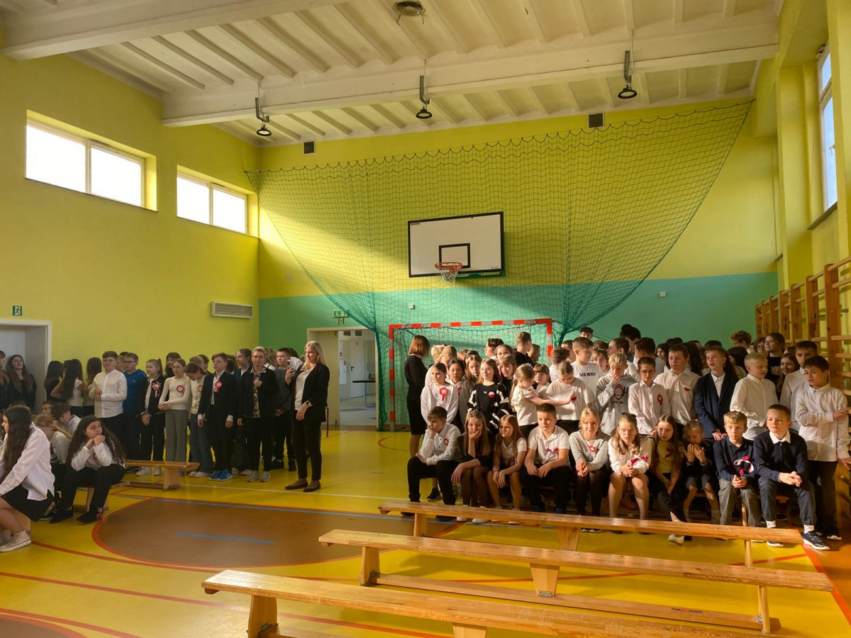 7 listopada w naszej szkole odbyła się uroczystość z okazji zbliżającego się Narodowego Święta Niepodległości. Tego dnia uczniowie klas 5-8 wraz z przedszkolakami z Przedszkola Samorządowego nr 2 wzięli udział w ogólnopolskiej akcji „Szkoła do hymnu”, wspólnie śpiewając „Mazurek Dąbrowskiego” o godzinie 11:11.