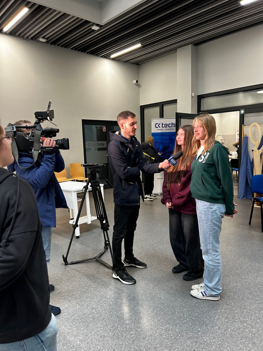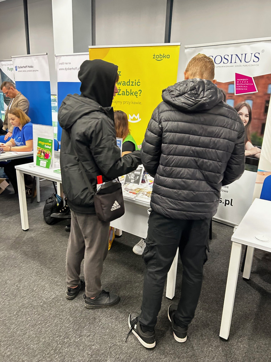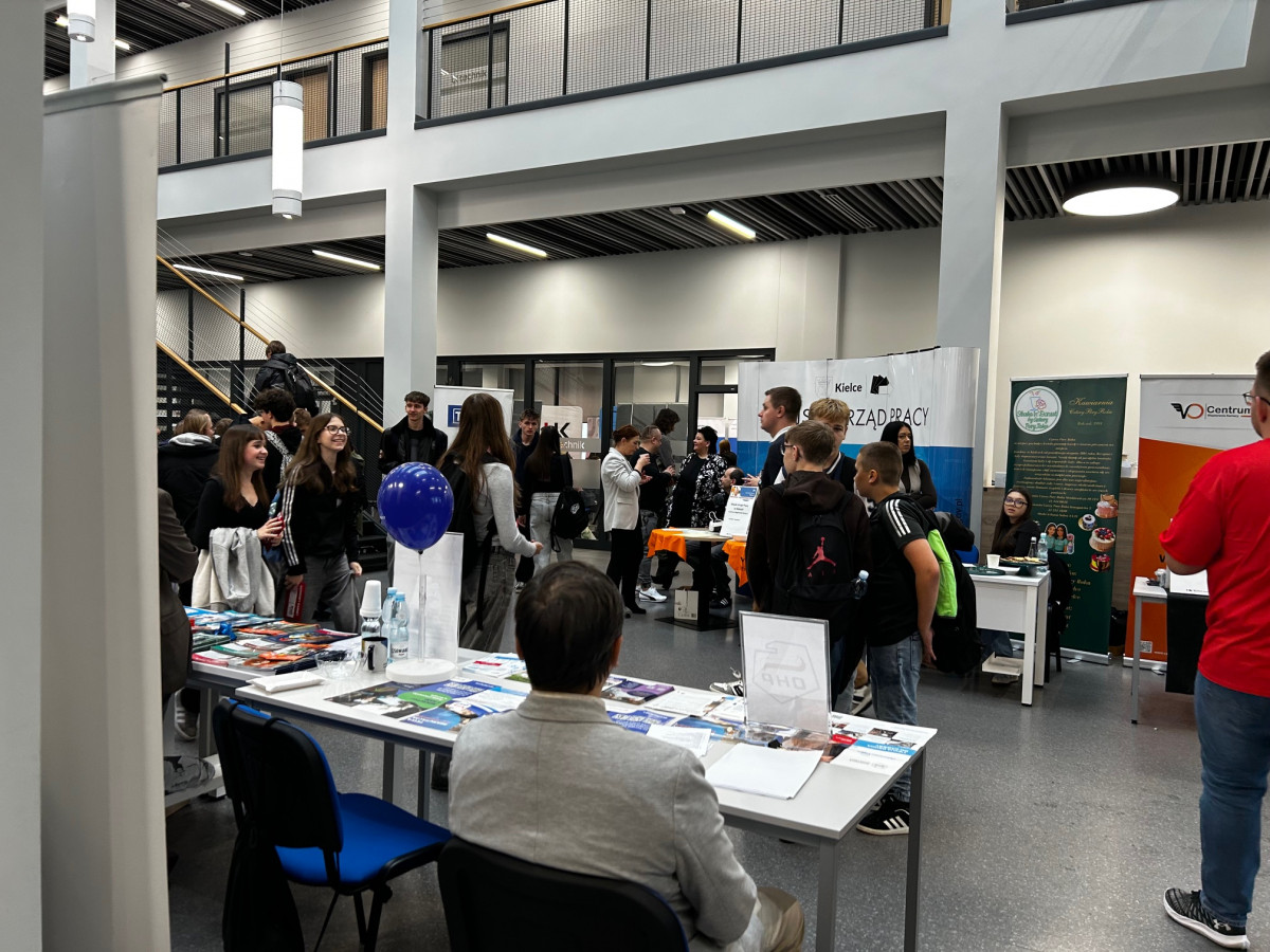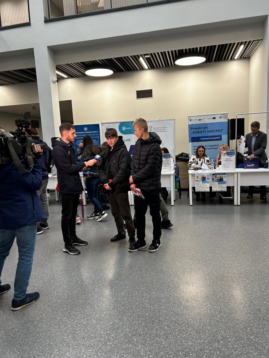 i Pracy w Kielcach, zorganizowanych w ramach XVII Ogólnopolskiego Tygodnia Kariery pod hasłem „Siła relacji w erze samotności”. Podczas targów uczniowie mieli okazję zapoznać się z ofertą lokalnych szkół, uczelni, przedsiębiorstw i instytucji, które prezentowały różnorodne ścieżki kształcenia i możliwości rozwoju zawodowego. Młodzież mogła wziąć udział w warsztatach, spróbować swoich sił w symulatorach zawodów oraz porozmawiać z doradcami zawodowymi o swoich predyspozycjach i planach na przyszłość. Z dumą informujemy, że kilkoro naszych ósmoklasistów udzieliło wywiadu dla TVP3 Kielce, dzieląc się swoimi wrażeniami z udziału w targach i refleksjami na temat wyboru przyszłego zawodu.
