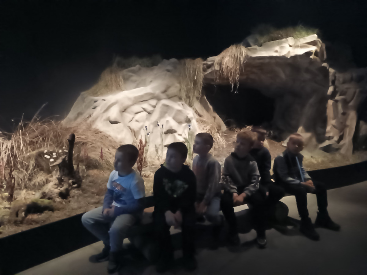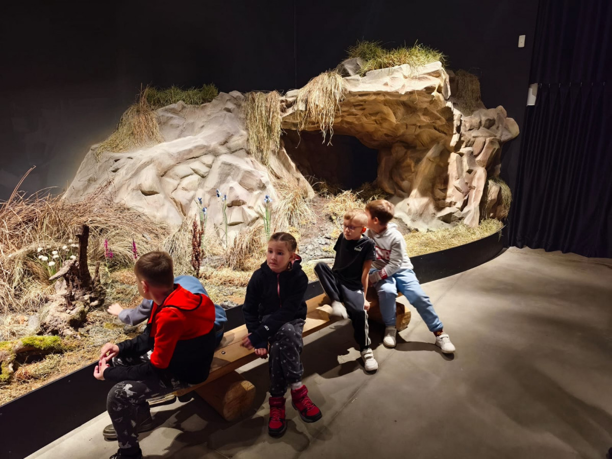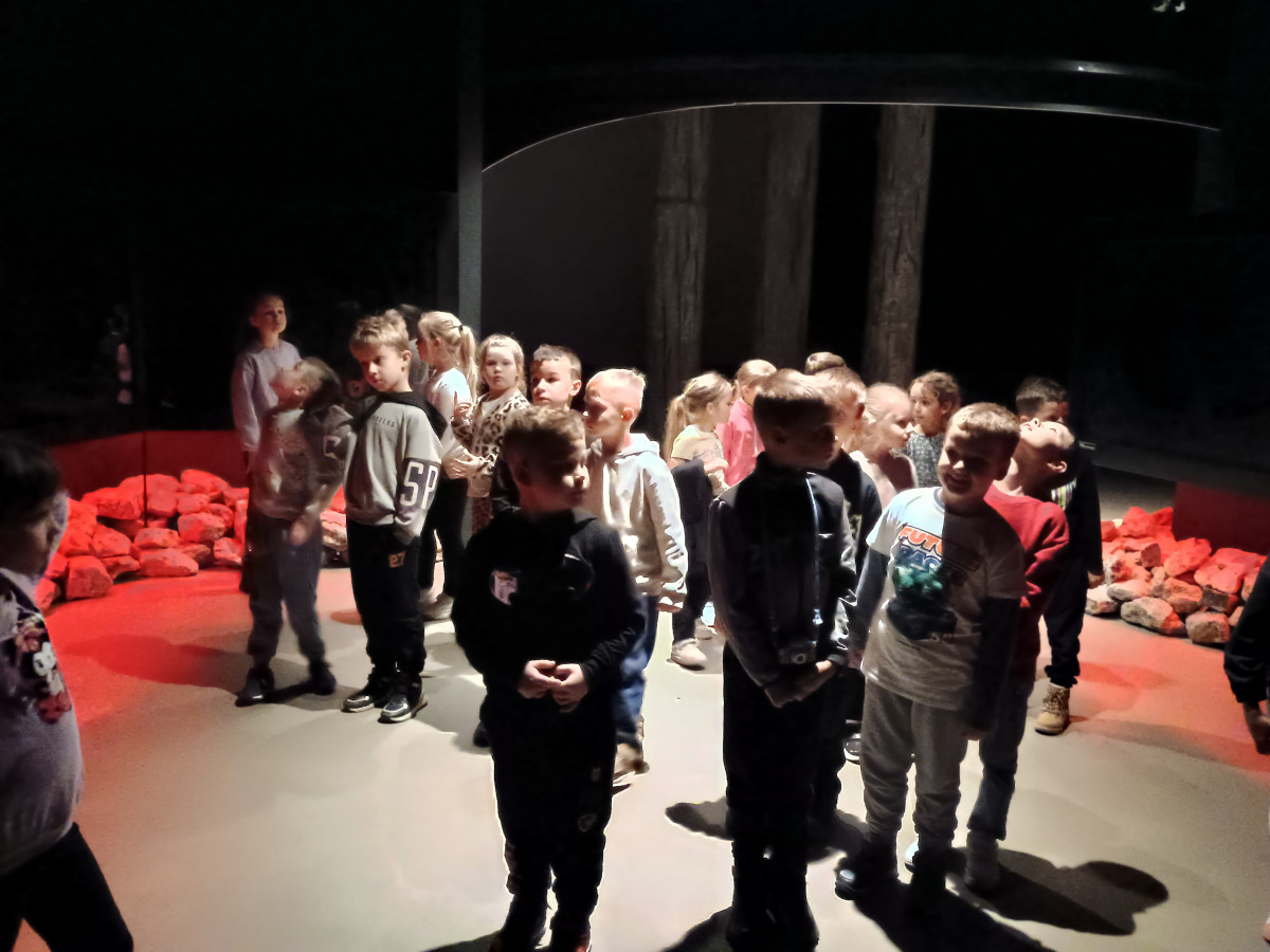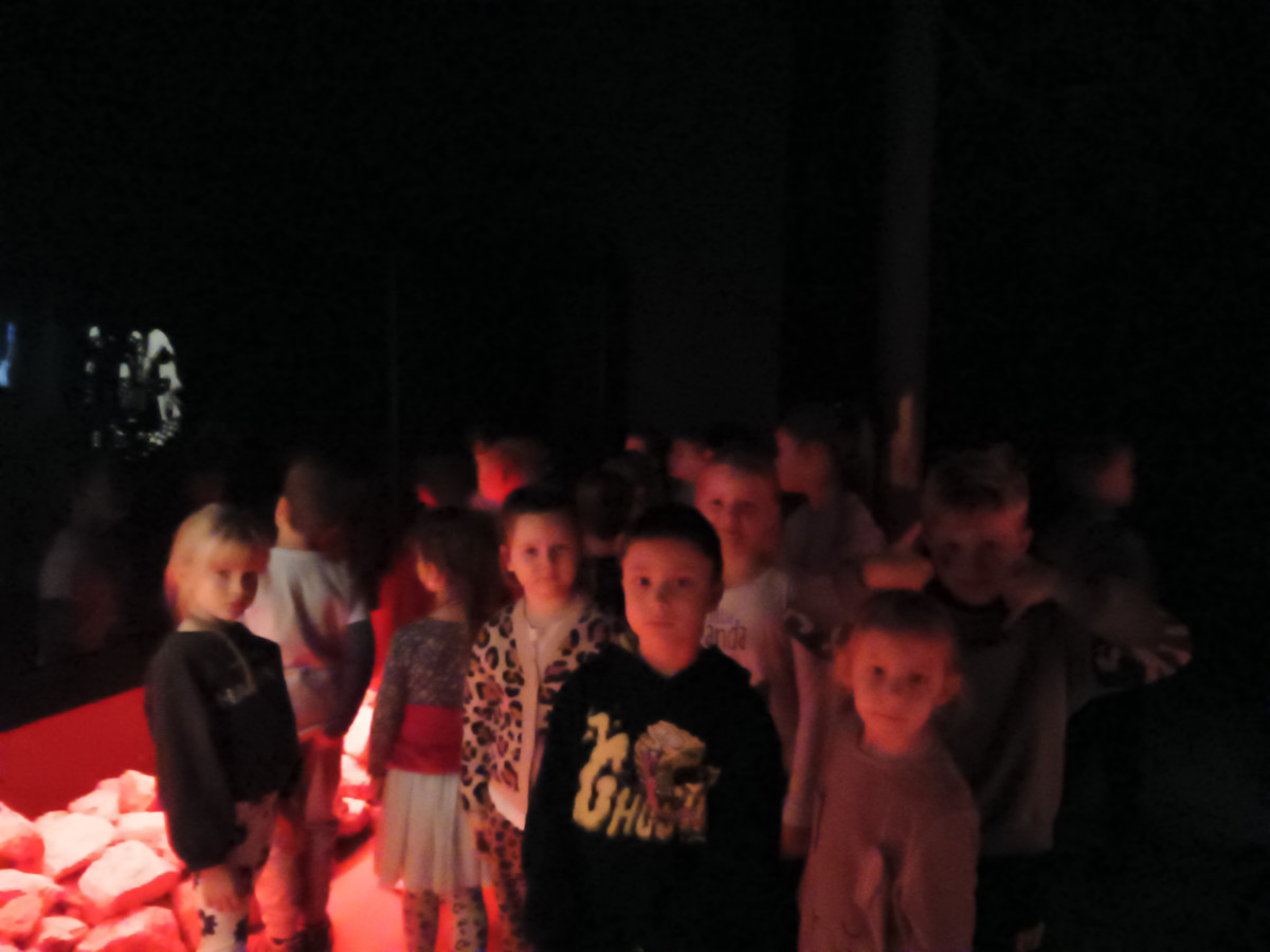 Powitani przez (podejrzanie uśmiechniętą) przemiłą obsługę, pozostawili swoje rzeczy w szatni i ruszyli w nieznany świat świętokrzyskich legend. W ciemnych korytarzach szli wiedzeni światłem zapalanych kolejno lamp, co jakiś czas, słychać było głębokie westchnienia i krzyki zwiedzających. Legendy nie były opowiadane przez przewodnika. Swoimi głosami dawni mieszkańcy opowiadali własną historię. Uczniowie słuchali i oglądali z zaciekawieniem tajemnicze miejsca. Głosy rycerzy, śmiech czarownic, łomot głazów rzucanych przez olbrzymy, walki zbójców z bogaczami, historia pielgrzyma – przepowiadająca nadejście końca świata, zawiłe opowieści o królach i królowych, oraz ryk strasznego stwora. To wszystko doprowadziło naszych milusińskich do…