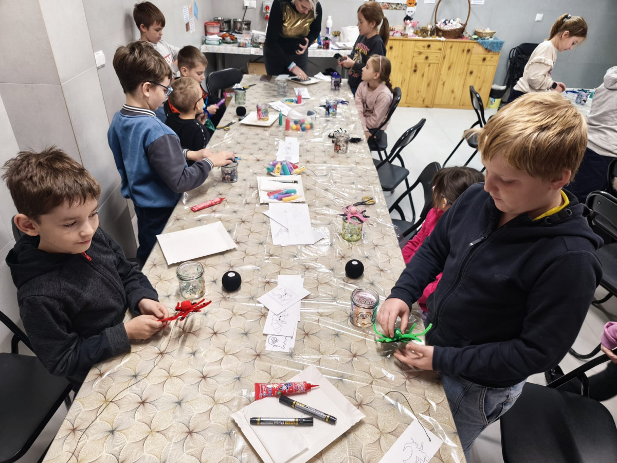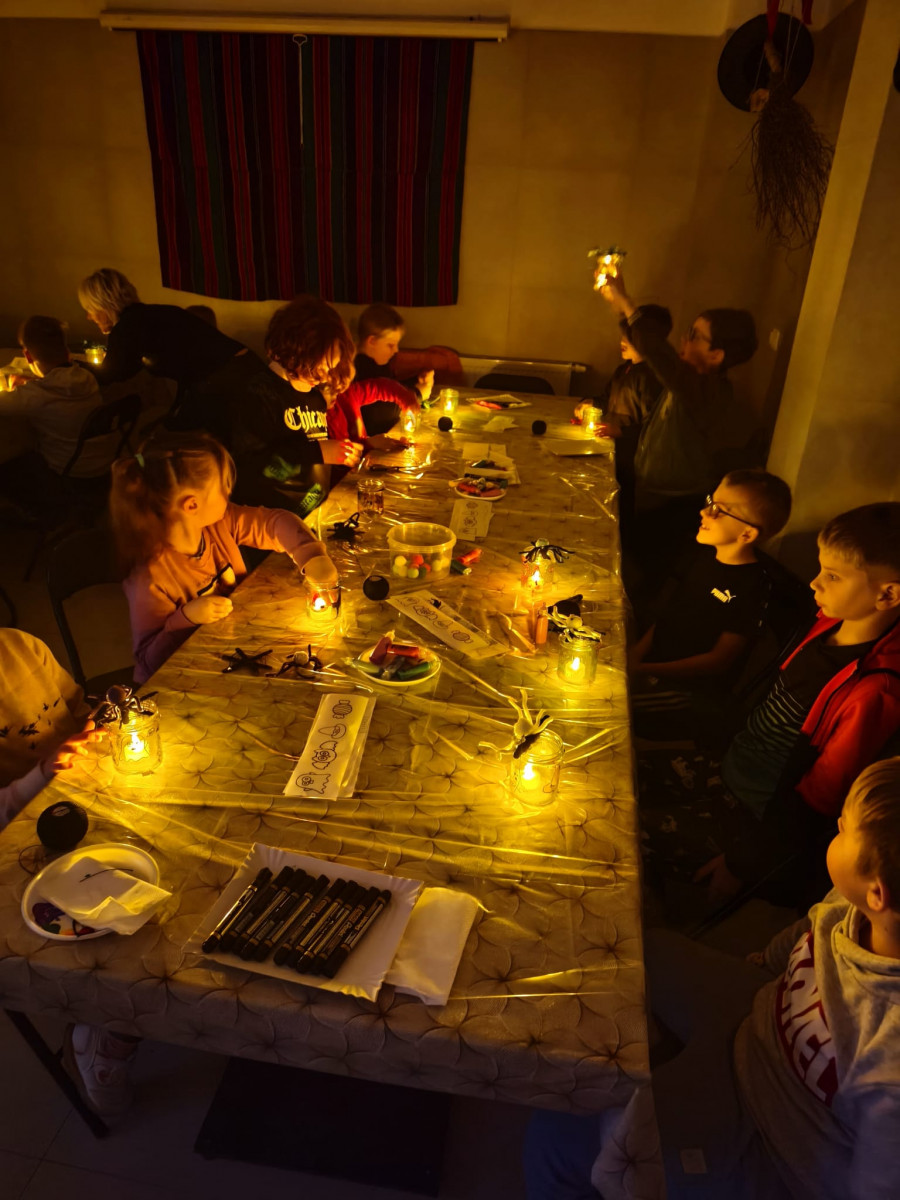 Ostatnim etapem podróży był przystanek „lampion halloween”. Warsztaty zostały specjalnie przygotowane dla naszych uczniów. Chociaż zrobienie lampionu wiązało się z wykonaniem szeregu prac plastyczno-technicznych, dzielni podróżnicy dali radę.