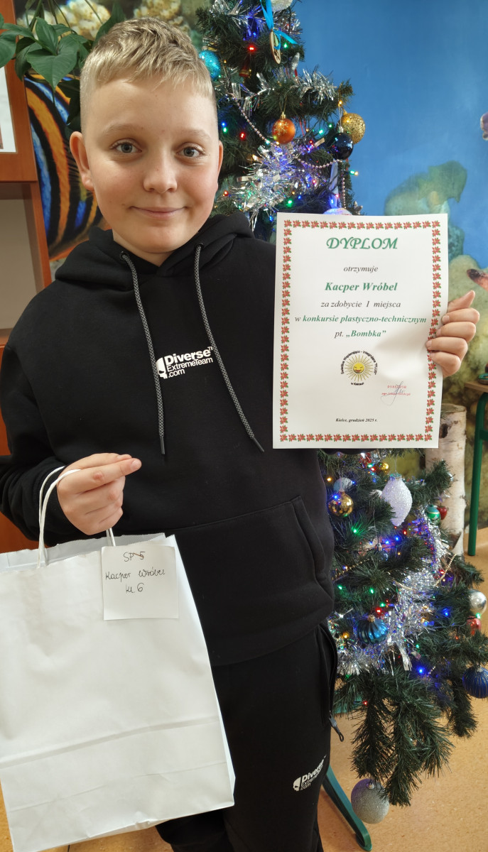 Uczniowie naszej szkoły wzięli udział w międzyszkolnym konkursie plastyczno-technicznym pt.: „Bombka”, organizowanym przez Świetlicę Wspierająco-Integrującą „PLUS” w Kielcach.