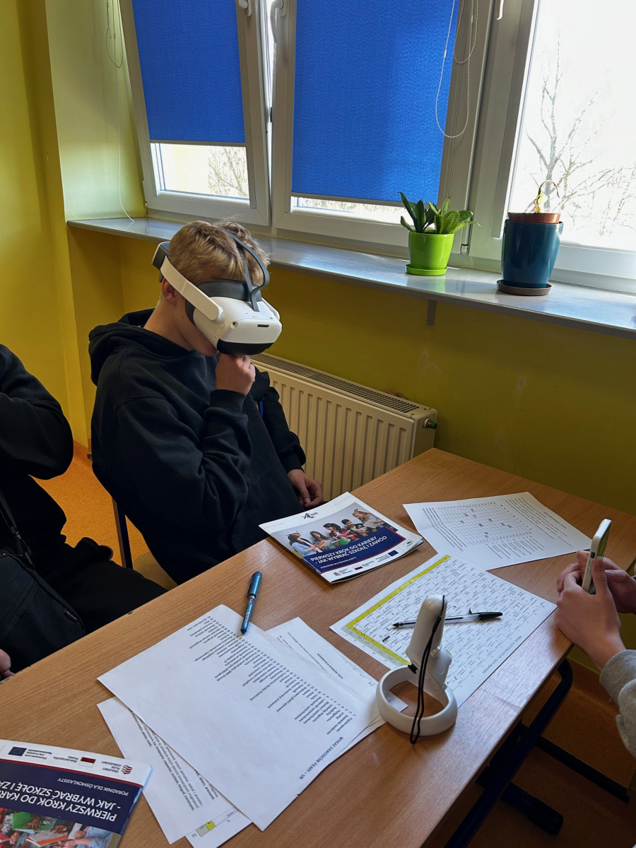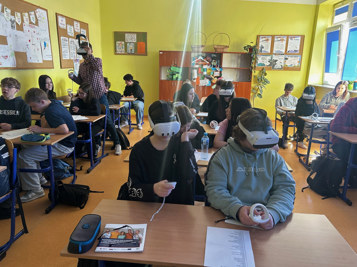 Uczniowie obejrzeli prezentację „Widzę siebie w tym zawodzie”, wykonali test zainteresowań i przyjrzeli się temu, jak ich predyspozycje mają się do dalszej ścieżki edukacyjnej. Było o rynku pracy, zawodach przyszłości, kierunkach technicznych i humanistycznych oraz o tym, gdzie szukać rzetelnych informacji.
