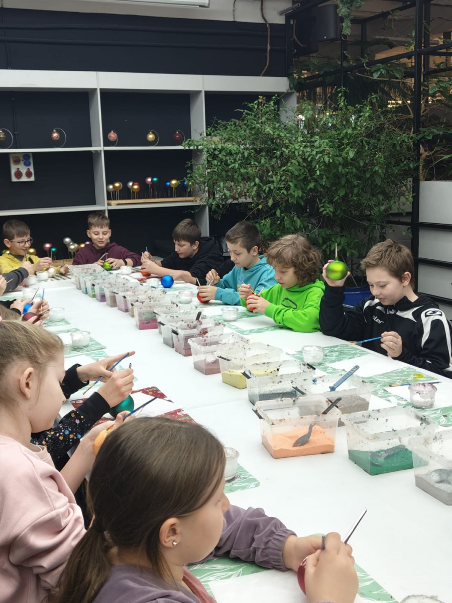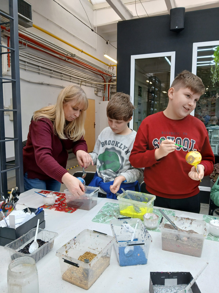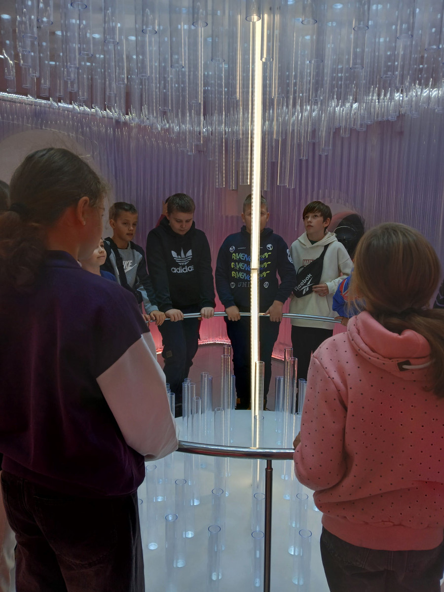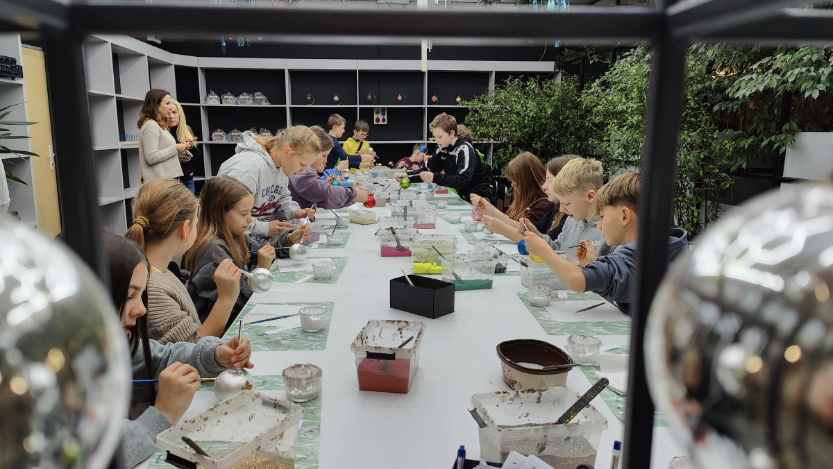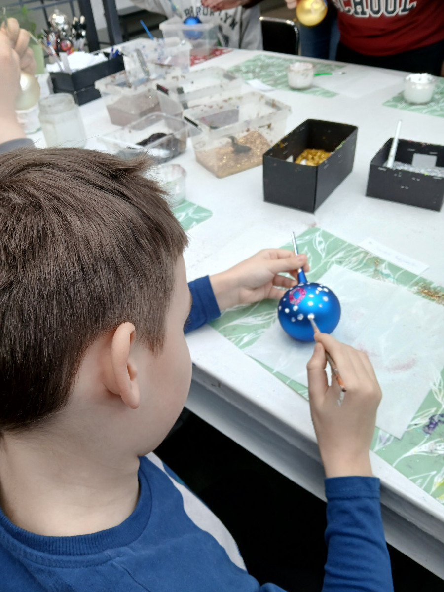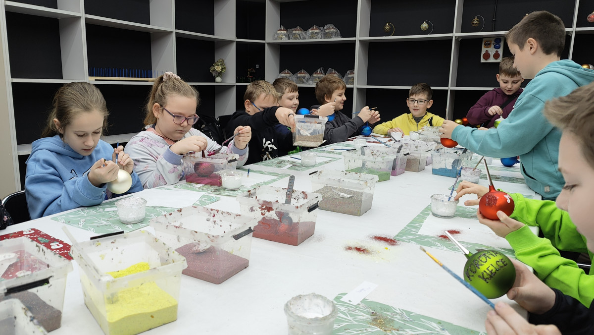 Już od samego wejścia dzieci zostały wprowadzone w magiczną atmosferę – zwiedziły Żywe Muzeum Bombki, gdzie przeszły przez ścieżkę edukacyjną pokazującą historię szkła i proces produkcji bombek. W sali edukacyjnej podziwiały ozdoby z dawnych lat – niektóre z bombek pochodzą z ubiegłych dekad, co pokazało, jak zmieniały się wzory i techniki na przestrzeni czasu. Podczas zwiedzania poznali cały proces powstawania szklanych ozdób — od dmuchania gorącego szkła, przez srebrzenie, aż po malowanie i dekorowanie. Najbardziej wyczekiwanym momentem była część warsztatowa – każdy uczeń miał okazję własnoręcznie ozdobić bombkę pod opieką dekoratorki. To nie tylko świetna zabawa, ale również niepowtarzalna pamiątka, którą dzieci zabrały do domu. Podczas zwiedzania na uczniów czekała wyjątkowa niespodzianka: w jednej z sal muzeum dzieci przeniosły się do wnętrza bombki — dzięki efektom świetlnym i lustrzanym to doświadczenie było niemal jak wejście do innego świata. Wycieczka była wartościowym doświadczeniem: nie tylko pozwoliła na poznanie tradycyjnego rzemiosła, ale również rozbudziła kreatywność i wzbudziła podziw dla pracy rękodzielników. Wracaliśmy do szkoły z głowami pełnymi kolorowych pomysłów… i z bombkami w plecakach 😊