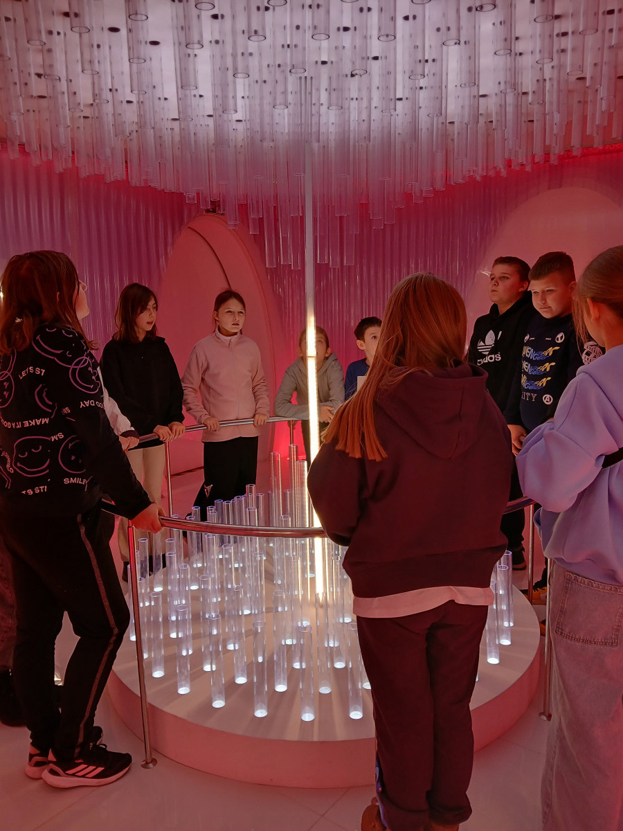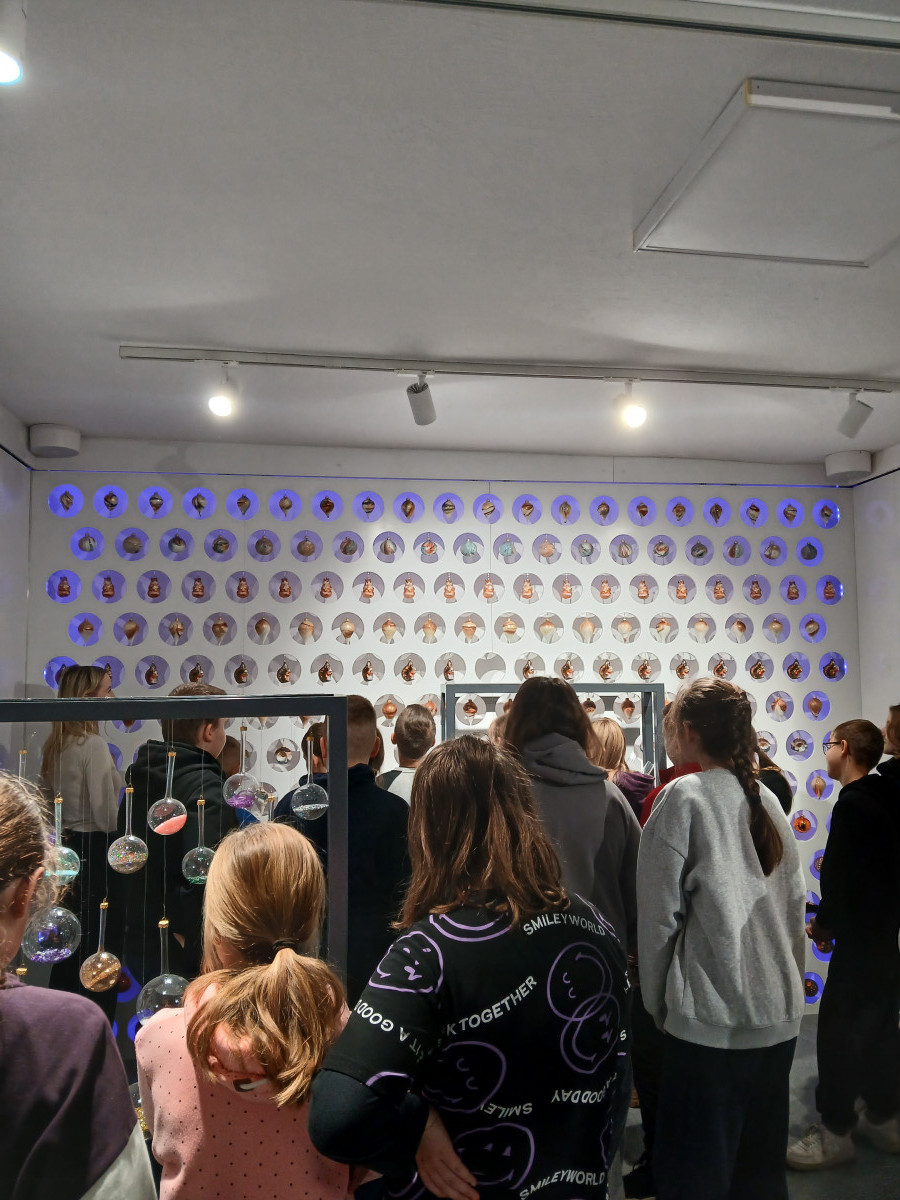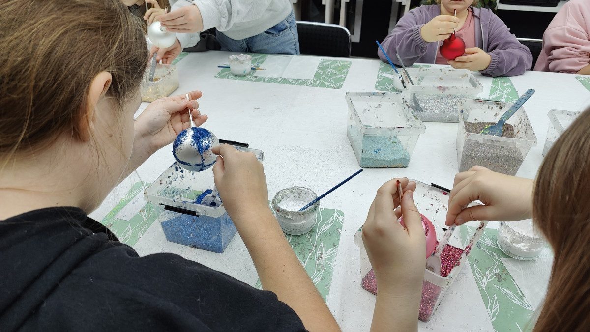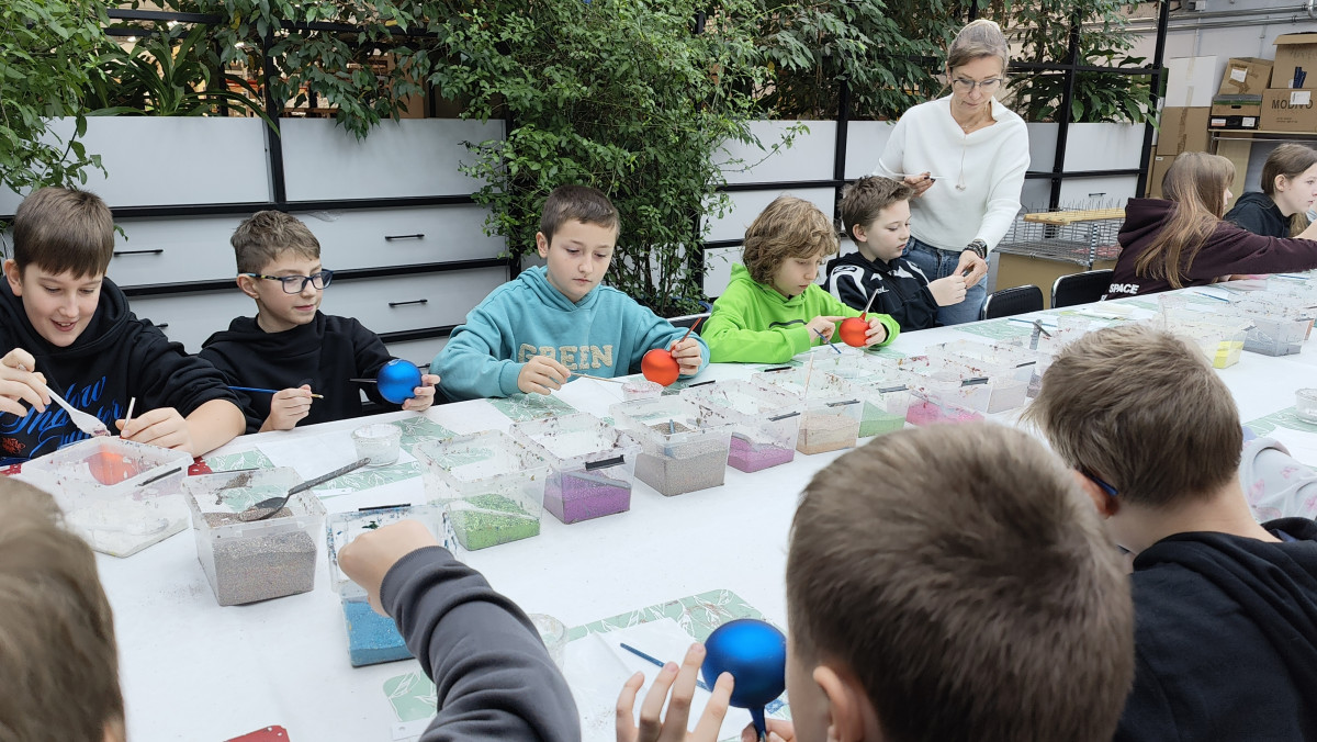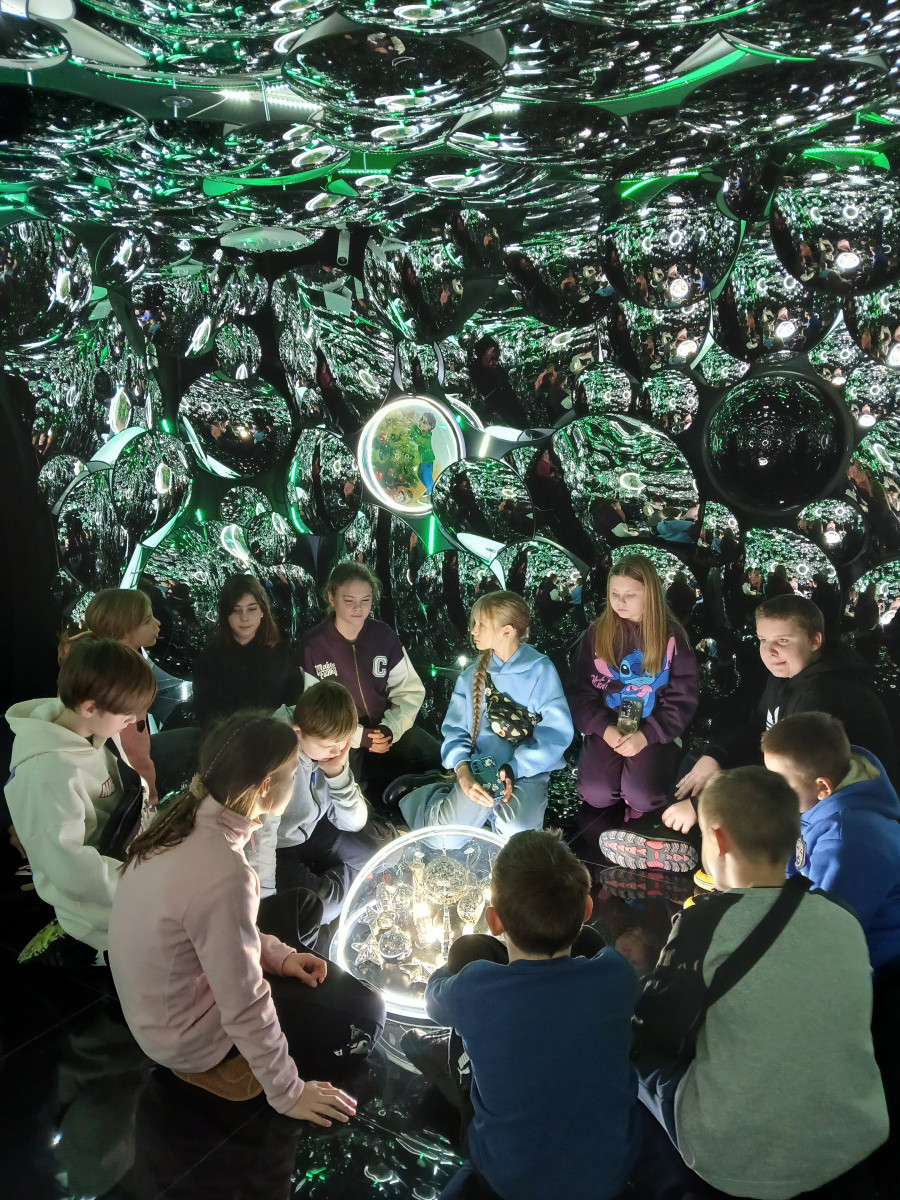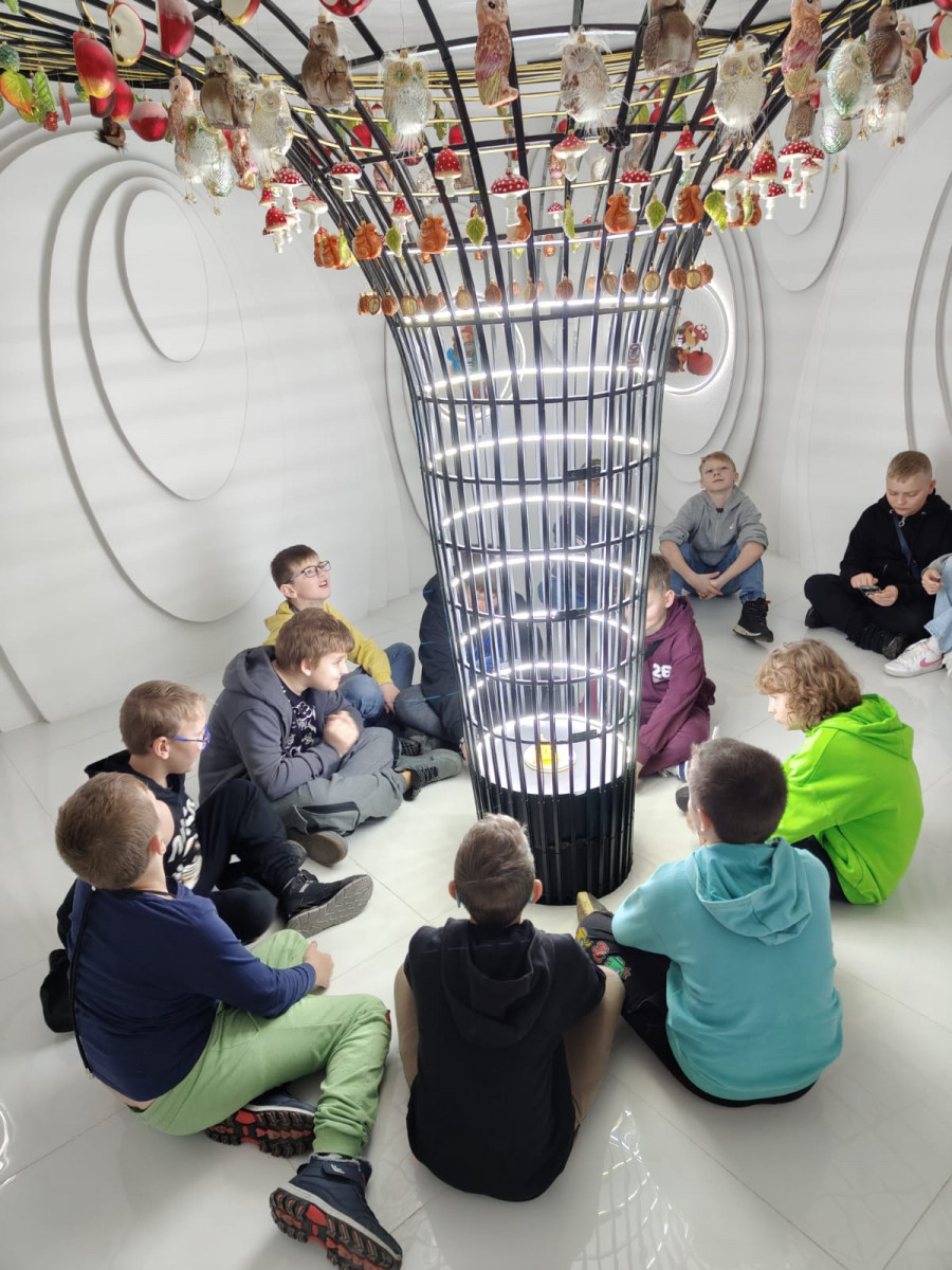Już od samego wejścia dzieci zostały wprowadzone w magiczną atmosferę – zwiedziły Żywe Muzeum Bombki, gdzie przeszły przez ścieżkę edukacyjną pokazującą historię szkła i proces produkcji bombek. W sali edukacyjnej podziwiały ozdoby z dawnych lat – niektóre z bombek pochodzą z ubiegłych dekad, co pokazało, jak zmieniały się wzory i techniki na przestrzeni czasu. Podczas zwiedzania poznali cały proces powstawania szklanych ozdób — od dmuchania gorącego szkła, przez srebrzenie, aż po malowanie i dekorowanie. Najbardziej wyczekiwanym momentem była część warsztatowa – każdy uczeń miał okazję własnoręcznie ozdobić bombkę pod opieką dekoratorki. To nie tylko świetna zabawa, ale również niepowtarzalna pamiątka, którą dzieci zabrały do domu. Podczas zwiedzania na uczniów czekała wyjątkowa niespodzianka: w jednej z sal muzeum dzieci przeniosły się do wnętrza bombki — dzięki efektom świetlnym i lustrzanym to doświadczenie było niemal jak wejście do innego świata. Wycieczka była wartościowym doświadczeniem: nie tylko pozwoliła na poznanie tradycyjnego rzemiosła, ale również rozbudziła kreatywność i wzbudziła podziw dla pracy rękodzielników. Wracaliśmy do szkoły z głowami pełnymi kolorowych pomysłów… i z bombkami w plecakach 😊