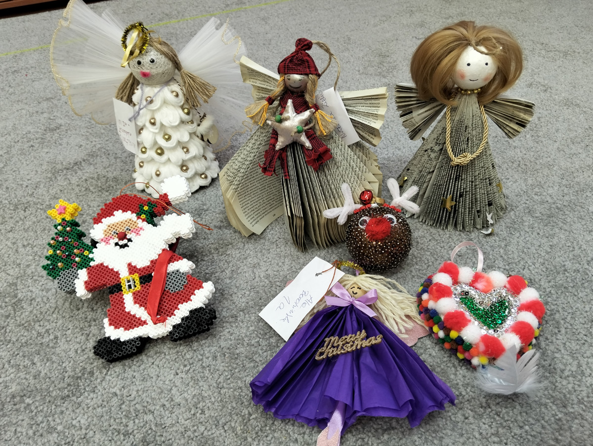 Zadaniem konkursowym było wykonanie dowolną techniką, przestrzennej ozdoby do zawieszenia na choinkę.