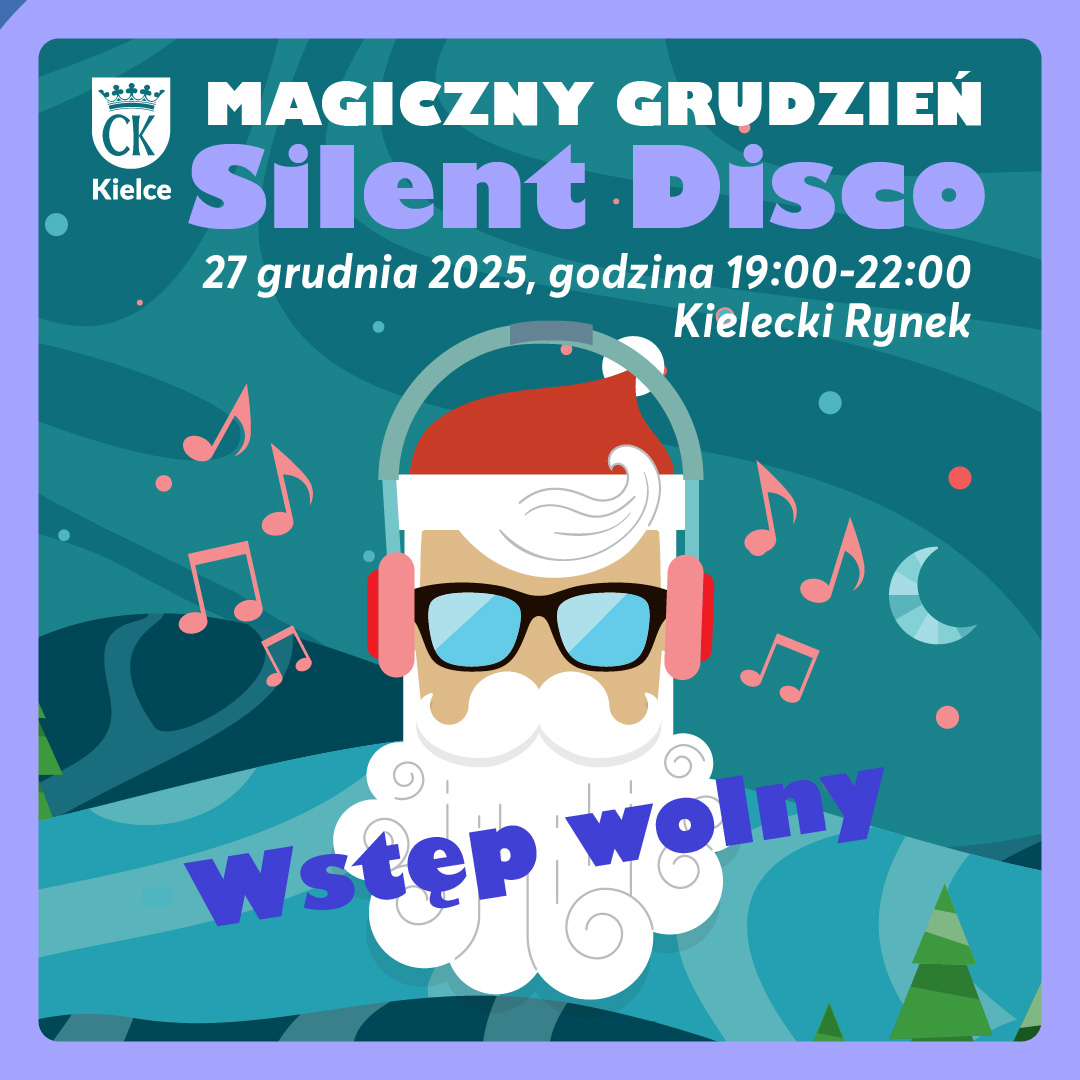 Silent Disco ponownie zawita na kielecki Rynek z energią i dobrą muzyką! W sobotę, 27 grudnia w godz. 19:00-22:00 trzech DJ-ów i trzy kanały muzyczne pozwolą wybrać ulubione brzmienia i zmieniać je w dowolnym momencie. W tym roku zwiększamy liczbę słuchawek aż do 750 sztuk. Wstęp oczywiście wolny. To świetna okazja, by spędzić grudniowy wieczór w ruchu, z uśmiechem i w wyjątkowej atmosferze Magicznego Grudnia.