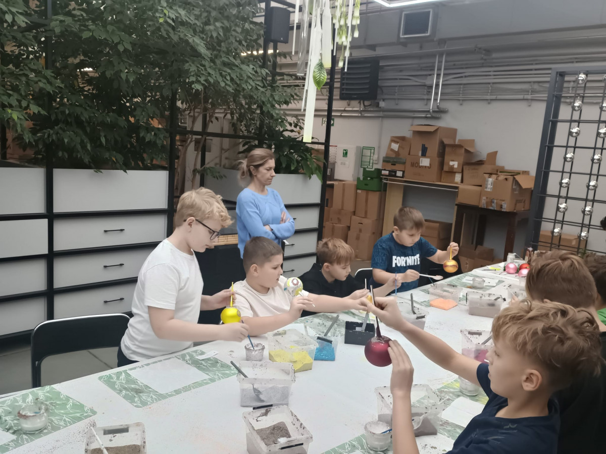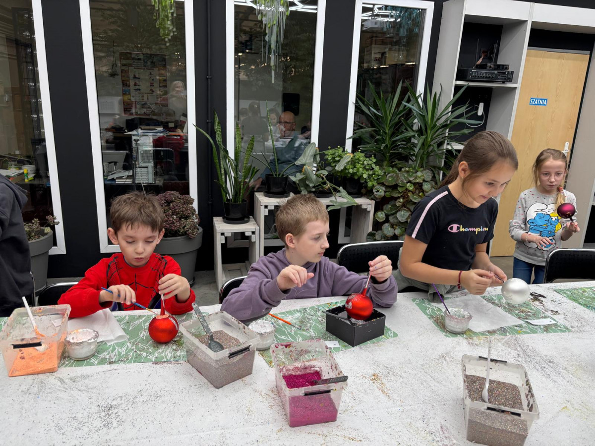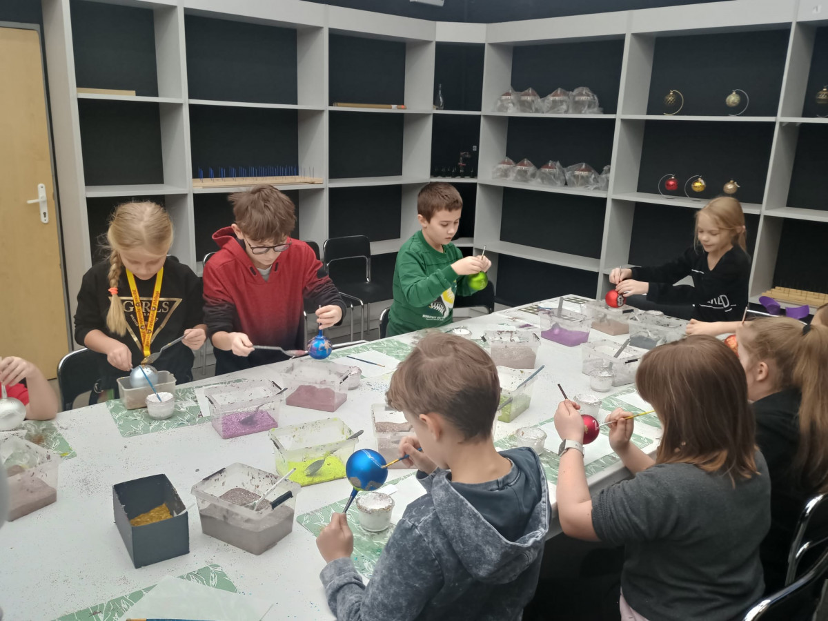 mała bombka, nim zawiśnie na pachnącym zielonym drzewku. Dzieci na warsztatach plastycznych własnoręcznie ozdobiły szklane kule.