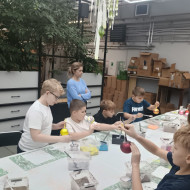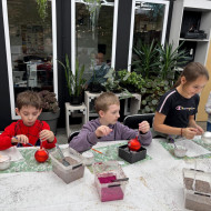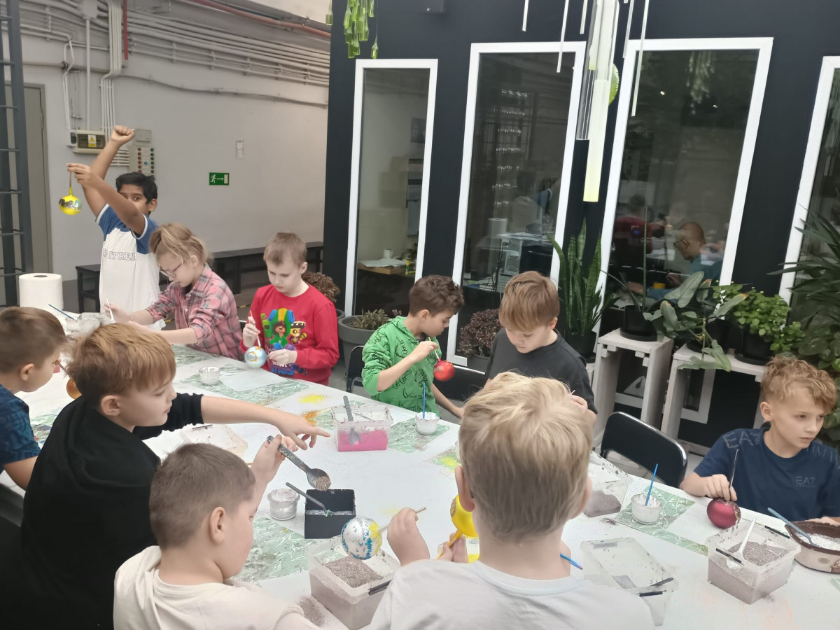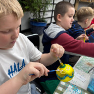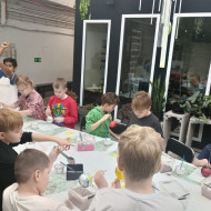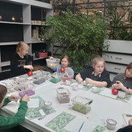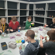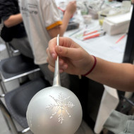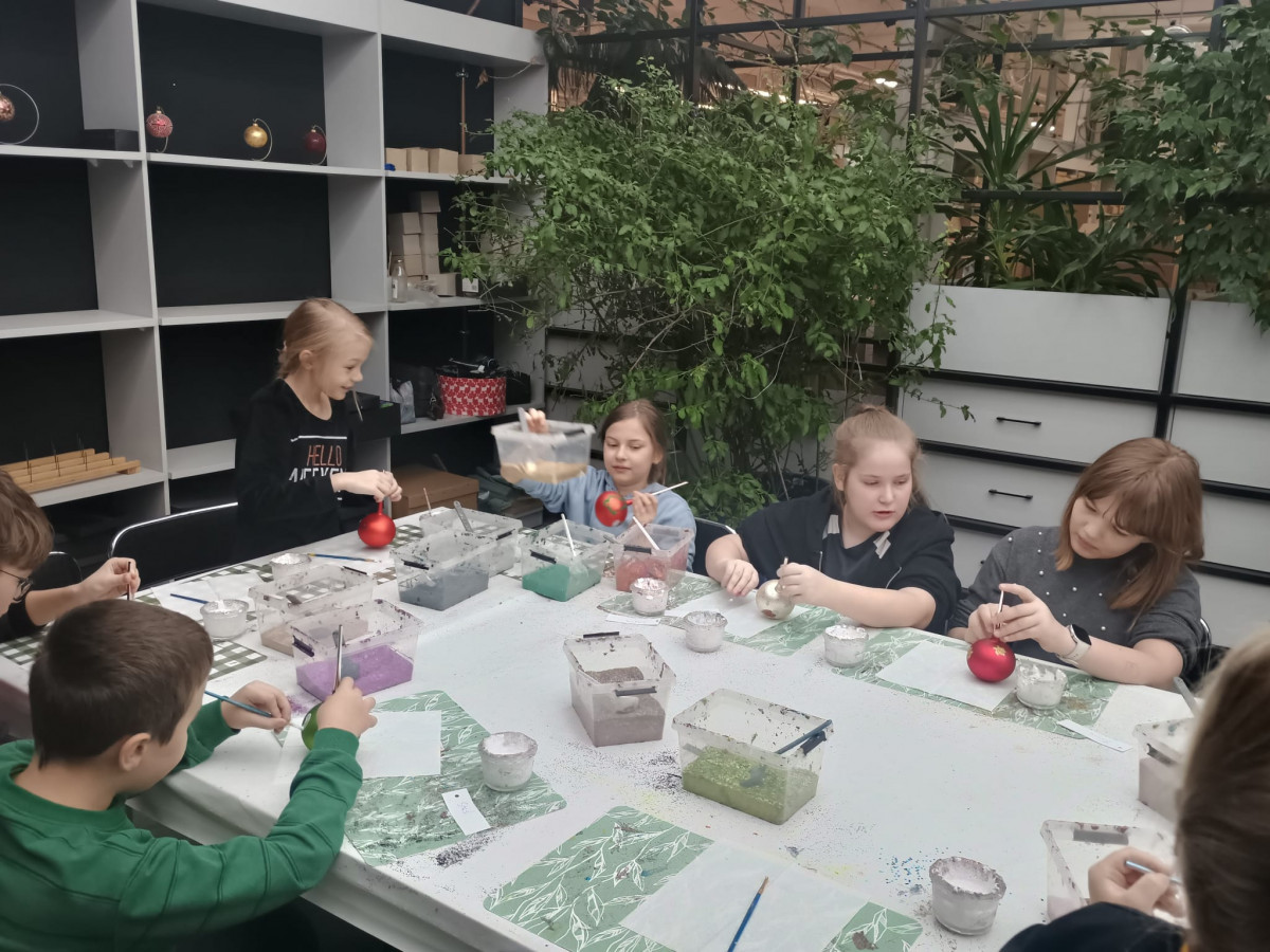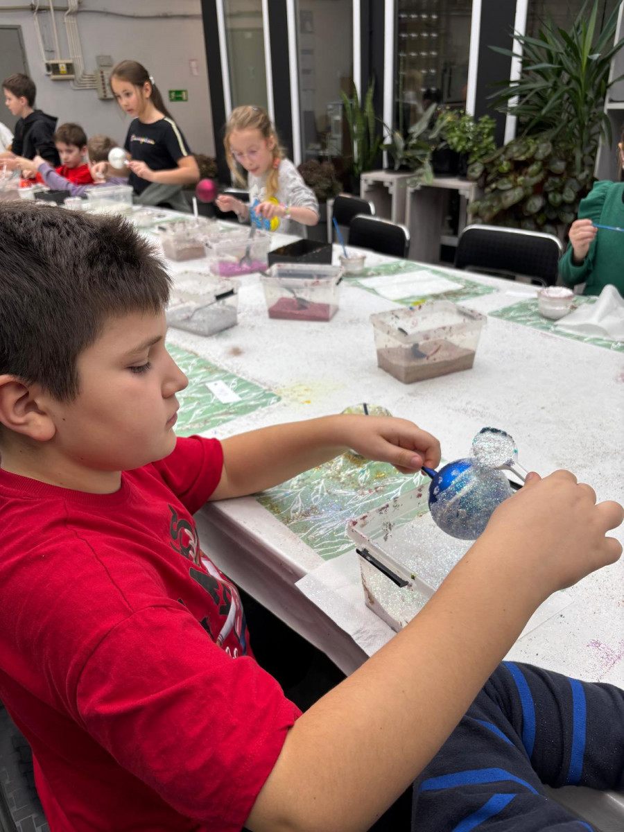mała bombka, nim zawiśnie na pachnącym zielonym drzewku. Dzieci na warsztatach plastycznych własnoręcznie ozdobiły szklane kule.