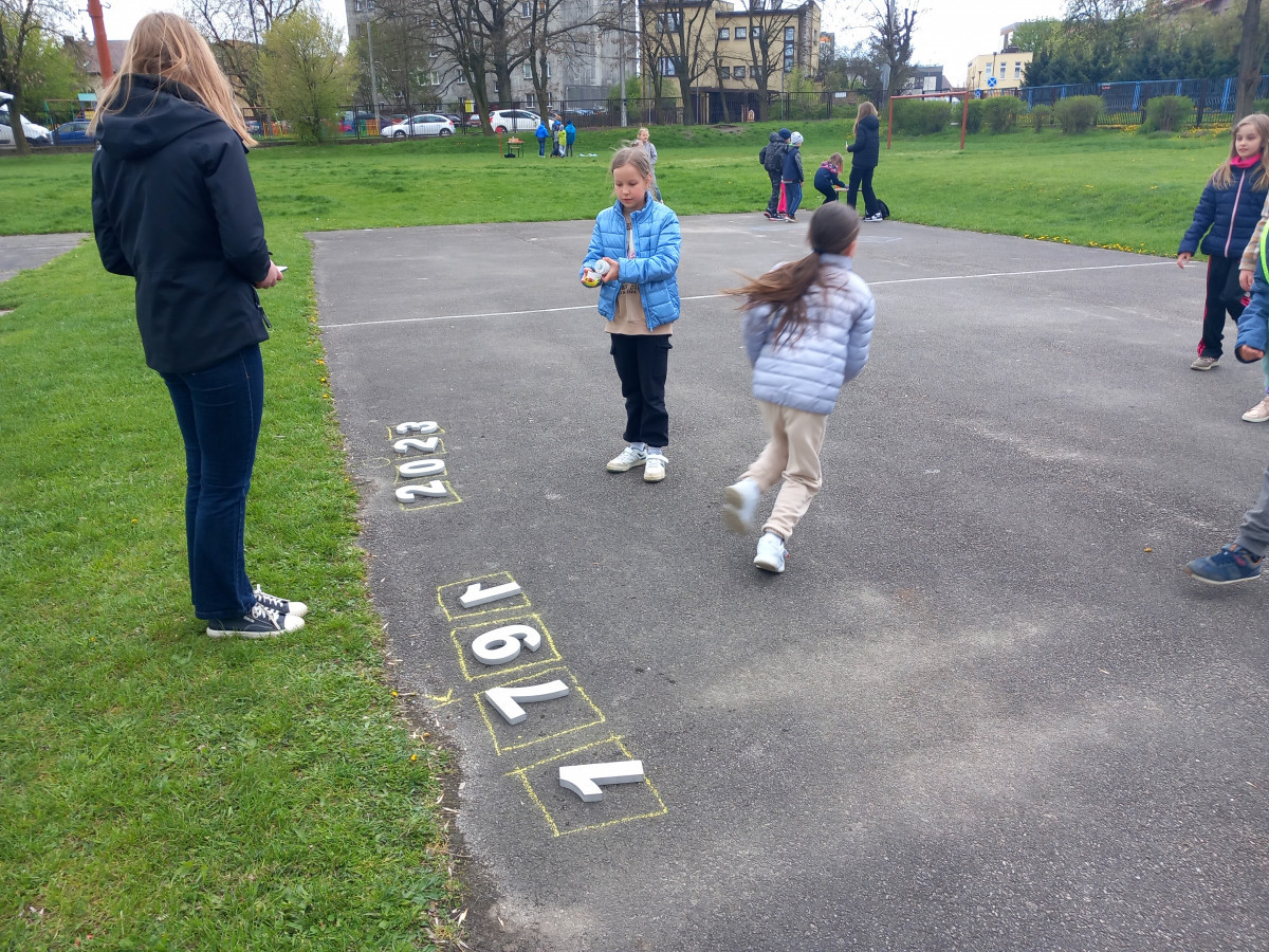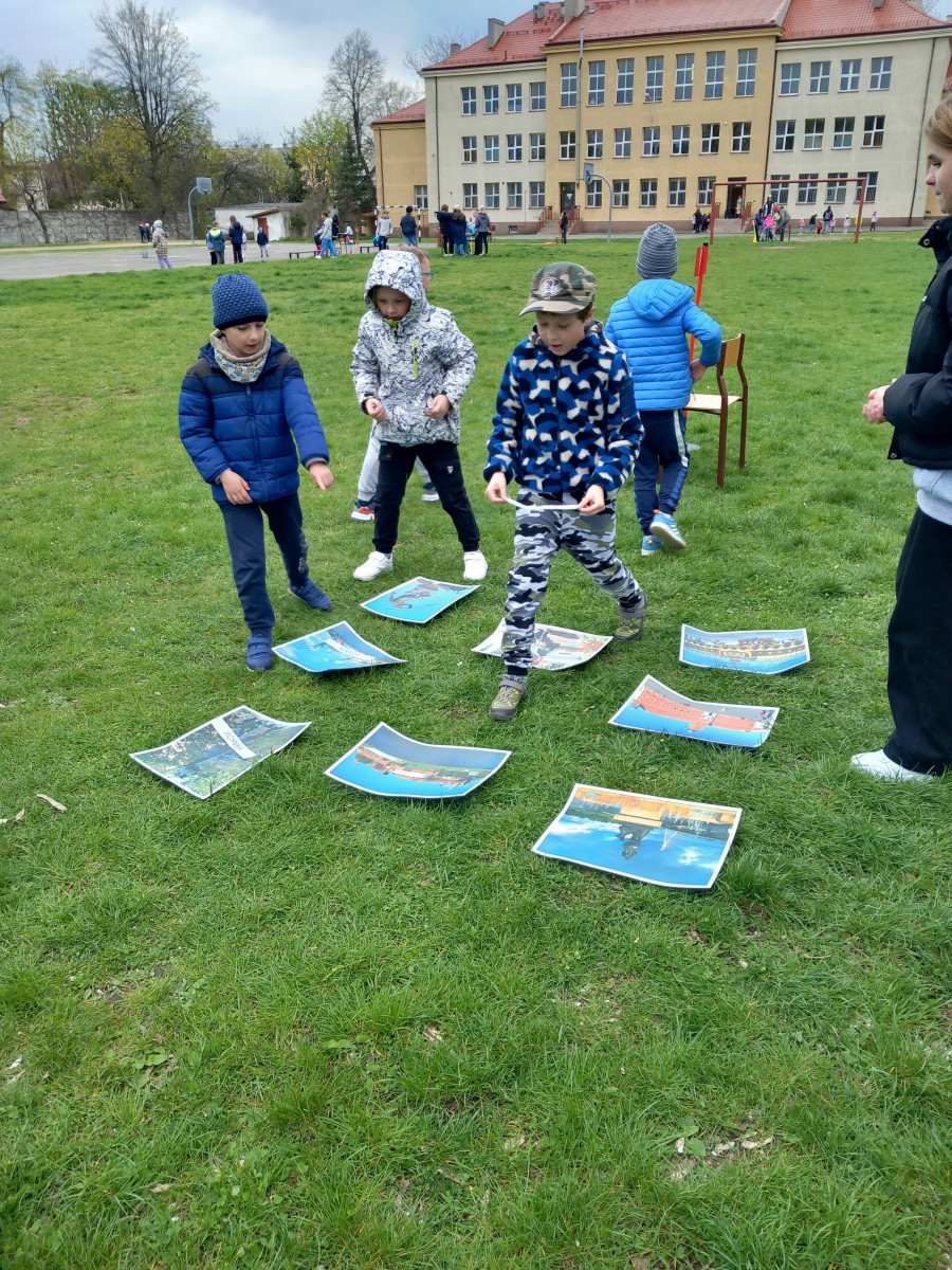 Dnia 27 kwietnia wszyscy uczniowie klas 0-III już po raz drugi uczestniczyli w grze terenowej pod hasłem "Jestem Patriotą". Na 14 przygotowanych stanowiskach czekało na dzieci 9 zadań sprawdzających poziom wiedzy o naszym kraju i jego symbolach narodowych oraz 5 zadań sportowych. Nasi najmłodsi uczniowie wykazali się doskonałą znajomością hymnu państwowego, godła i flagi. Świetnie poradzili sobie z łamigłówkami matematycznymi prowadzącymi do ułożenia mapy Polski. Krzyżówki, szyfry literowe i zakodowane obrazki też nie sprawiały zawodnikom trudności. Znakomicie poradzili sobie z ułożeniem z puzzli obrazu „Konstytucja 3 Maja” Jana Matejki. Konkurencje sportowe z biało - czerwonymi chorągiewkami, rybkami w basenie i wyścigiem na kapsle wzbudzały wielkie emocje. Jednak największą atrakcją okazały się zawody z przenoszeniem wody z wiadra białego do czerwonego, tu było dużo śmiechu i radości.