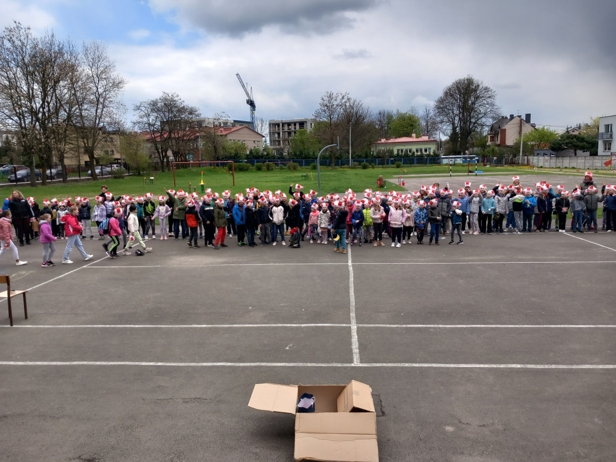 Na zakończenie biegu wszyscy uczniowie zaśpiewali piosenkę „Jesteśmy Polką i Polakiem” oraz otrzymali certyfikaty ukończenia gry i drobne upominki.