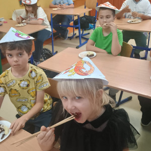 Klasy drugie realizowały tygodniowy projekt "RONDELKOMANIA" dotyczący prawidłowego odżywiania. projekt ten łączył treści edukacyjne z różnych obszarów podstawy programowej. Celem zajęć było poznanie znaczenia owoców i warzyw dla prawidłowego rozwoju i funkcjonowania organizmu. Samodzielnie wykonana sałatka warzywna była świetną okazją do kształtowania zmysłu smaku i zapachu oraz czerpania przyjemności z jedzenia zdrowych, estetycznie podanych, a przede wszystkim własnoręcznie wykonanych posiłków.