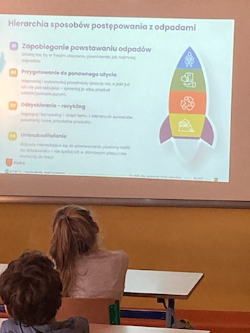 24.10.2025r. klasy trzecie uczestniczyły w warsztatach w ramach programu "Recyklingowa Akademia Młodych" realizowanego z wydziałem Klimatu, Środowiska i Gospodarki Komunalnej pod patronatem Prezydentki Kielc.