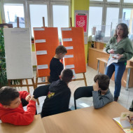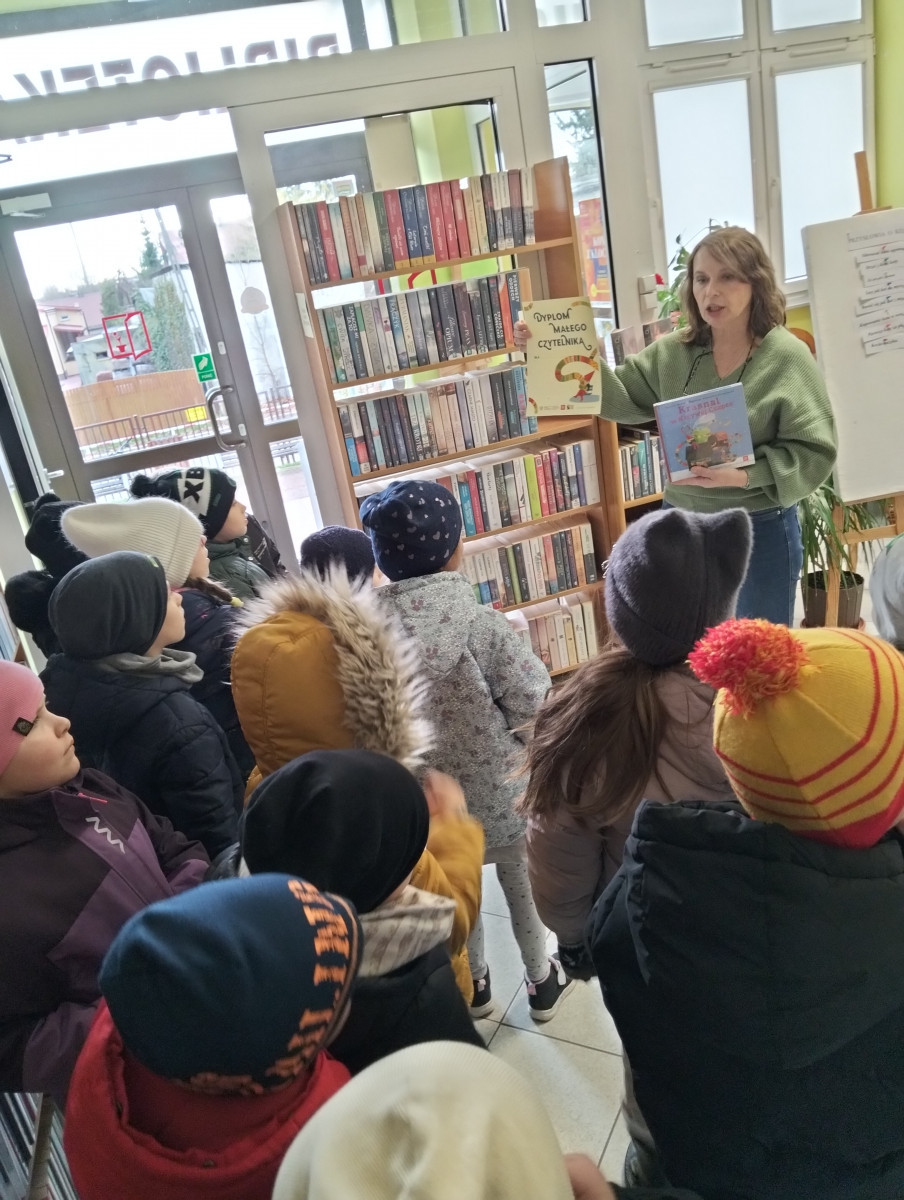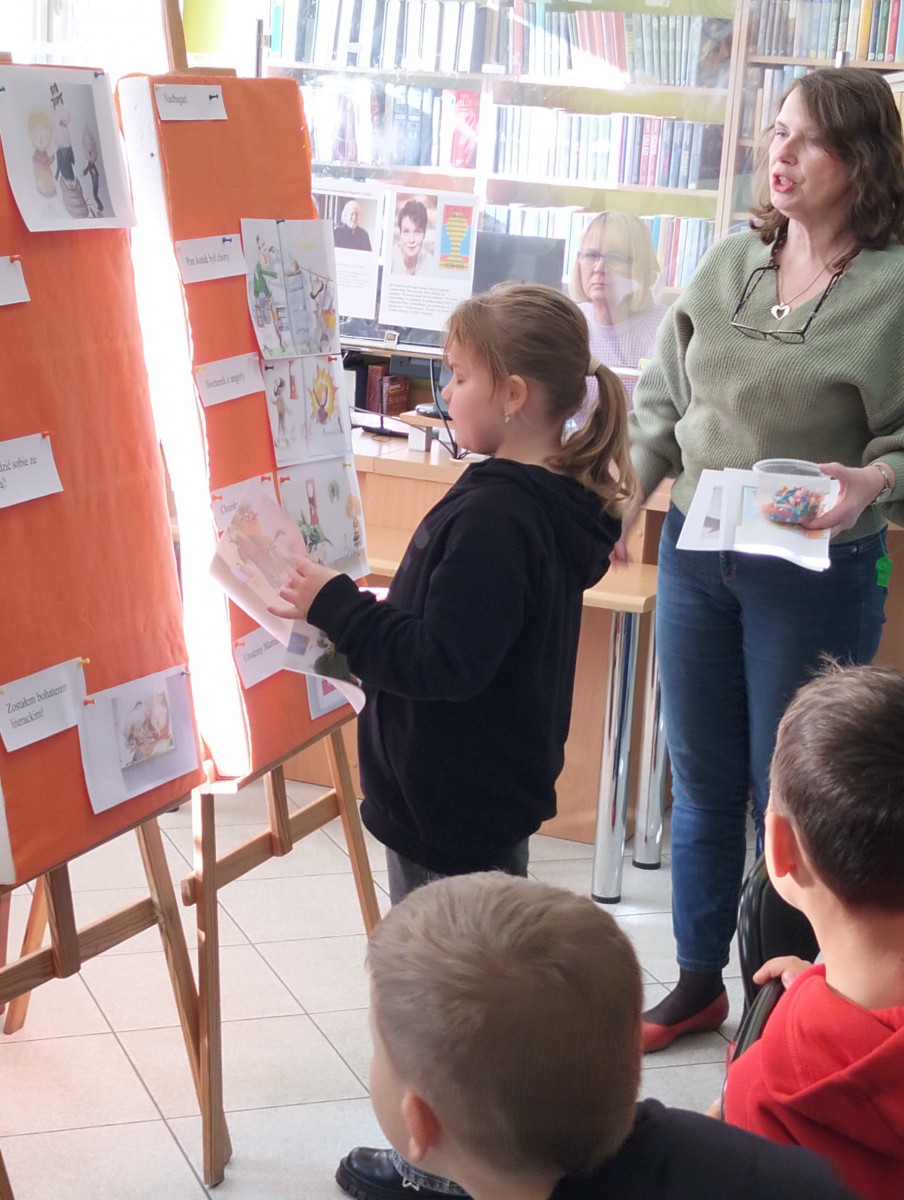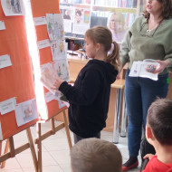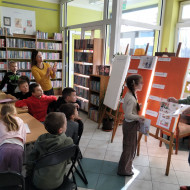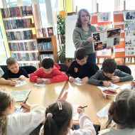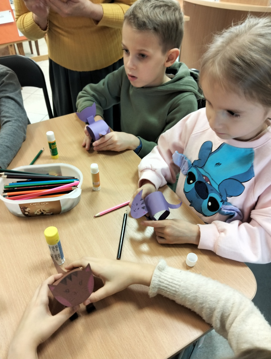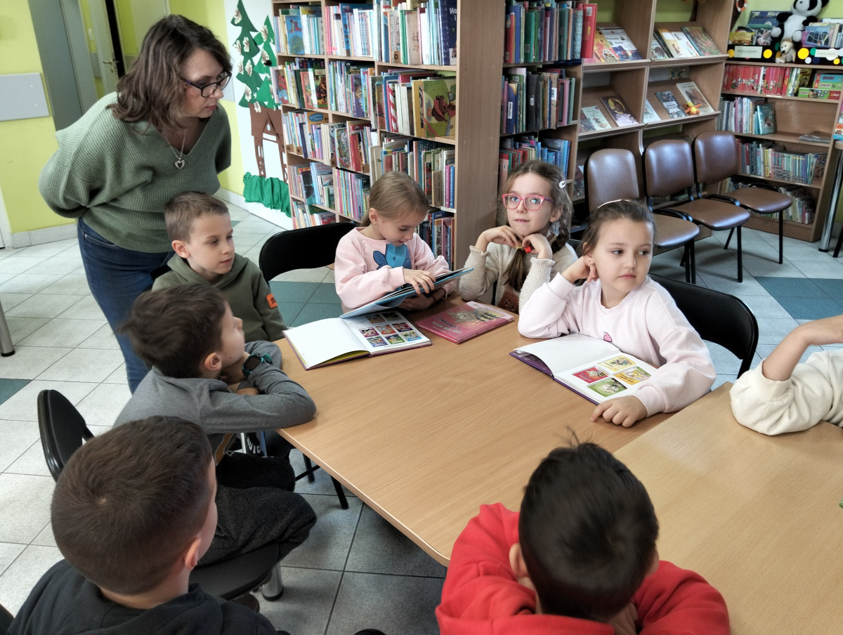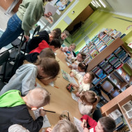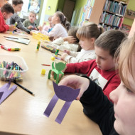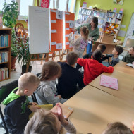Uczniowie klasy 1C wybrali się do Miejskiej Bibliotece Publicznej przy ul. Górniczej, aby znów spotkać się z „Cukierkiem”. Chodzi oczywiście o lekturę „Cukierku, ty łobuzie!”, którą ostatnio omawiali podczas zajęć w klasie. Tak, jak każde dziecko nie może oprzeć się cukierkom, tak nasi uczniowie nie mogą rozstać się z przezabawnym bohaterem „Cukrzycom”, czyli Cukierkiem – figlarnym kotem łobuzem. Aby zachęcić dzieci do kreatywnej „zabawy” z lekturą, uczniowie doświadczyli wielu form działań, które przygotowała p. M. Kuzia. Łamigłówki, krzyżówki, grupowy Quiz i na co wszyscy czekali – wykonanie przestrzennego Kotka… Uczniowie dowiedzieli się także wielce ciekawostek o tych milusińskich, jak również przekonali się o obowiązkach i odpowiedzialności, jakie czekają na każdego właściciela… Pierwszoklasiści chętnie wypowiadali się o swoich doświadczeniach, dotyczących posiadania zwierzątka.