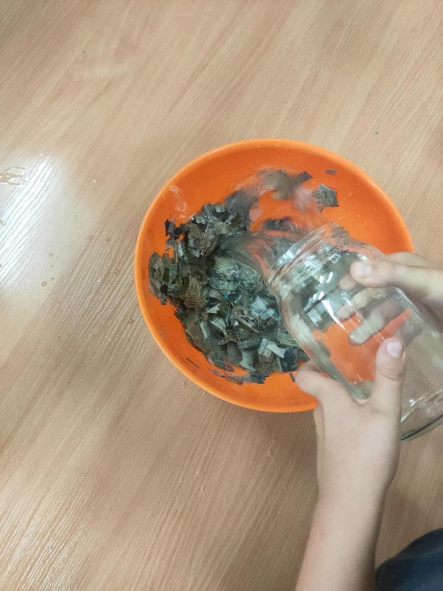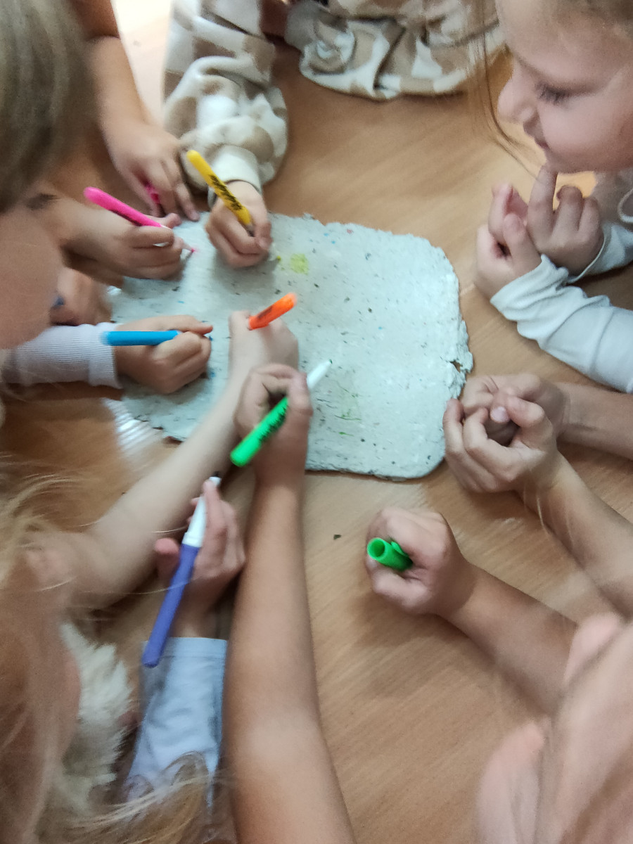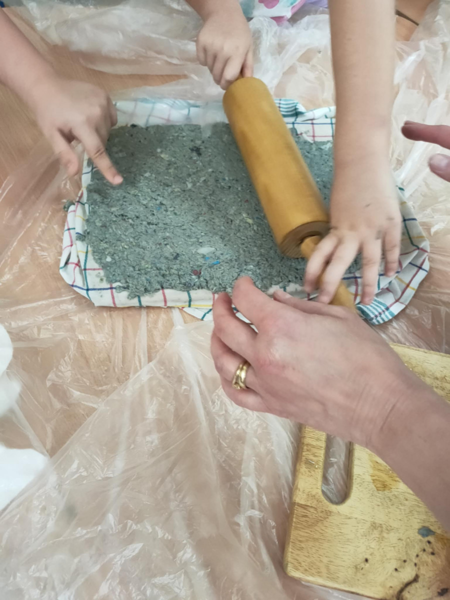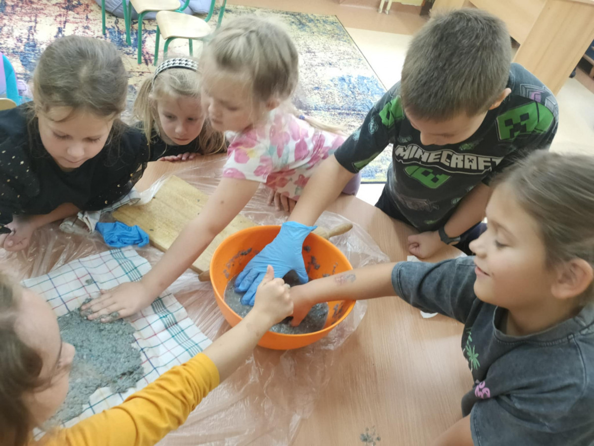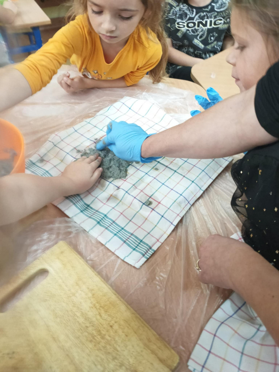 Ostatnio dzieci, niczym odkrywcy z Chin sprzed 2000 lat, wyprodukowali własnoręcznie papier w ramach zajęć pt. “Papier made in China”. Praca wymagała precyzji, cierpliwości a co za tym idzie sporo czasu. Przygotowanie papieru (a właściwie jak się później okazało tektury) to jedna sprawa, a kolejna to porządne jego wysuszenie. Dopiero po kilku dniach uczniowie zabrali się do oceny swojej pracy testując własne dzieło pod względem wytrzymałości, możliwości zapisu i pokrywania rysunkiem. Mimo, że zamiast kartki papieru ostatecznie powstała tektura, to obiektywnie rzecz ujmując zadanie wykonano wzorowo.
