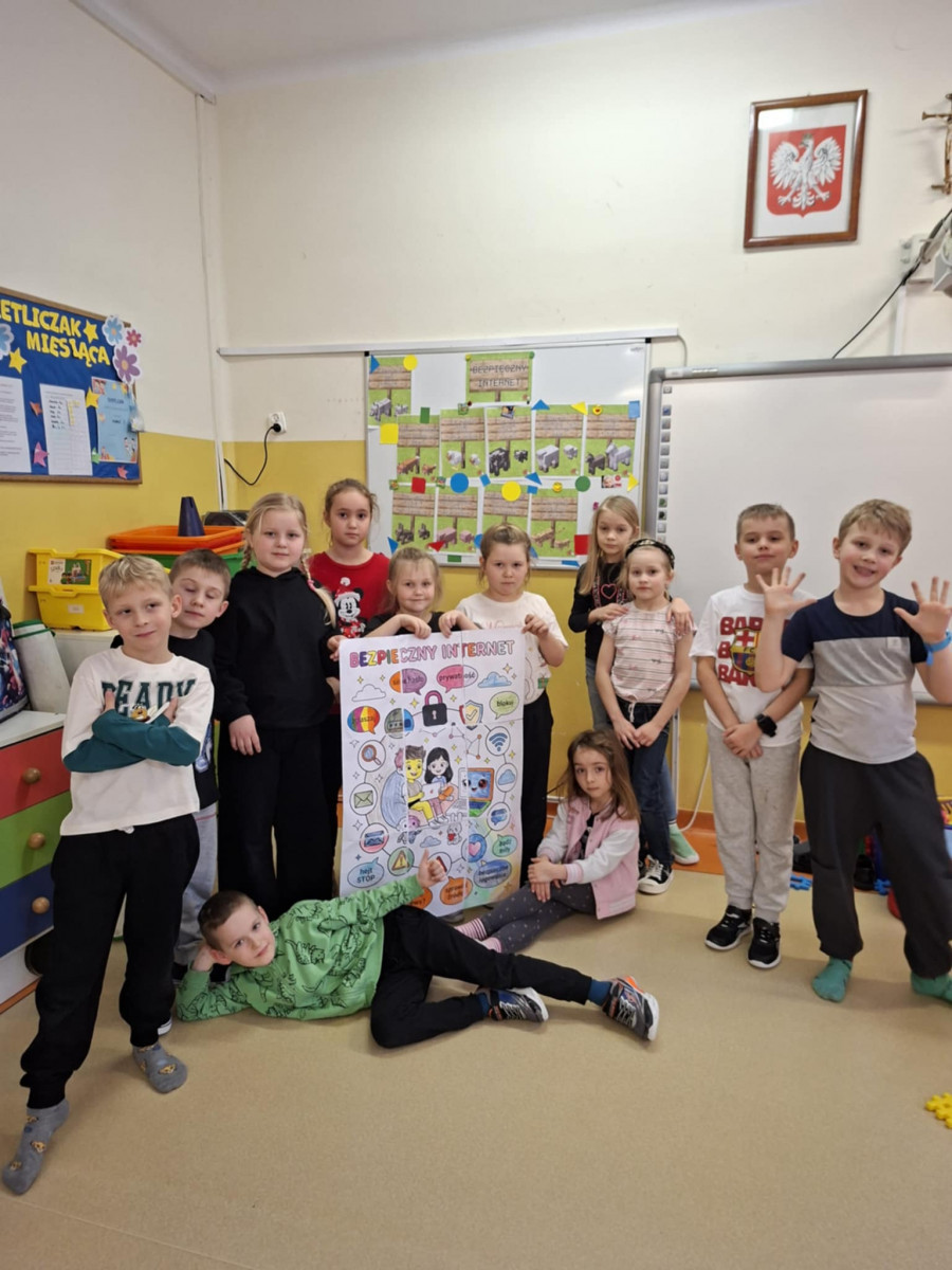 10 lutego obchodziliśmy w świetlicy Dzień Bezpiecznego Internetu. Mimo, że sporo dzieci doskonale orientuje się i biegle porusza w sieci, warto uświadomić lub chociaż przypomnieć użytkownikom internetu jak z niego korzystać, aby skorzystać (w dosłownym tego słowa znaczeniu), a nie stracić - danych, środków materialnych, czasem znajomych i przyjaciół a przede wszystkim godności, w skrajnych przypadkach zdrowia i życia. Uczniowie własnymi słowami próbowali rozwinąć zagadnienia ze wspólnie analizowanej gazetki ściennej. Następnie wykonali kolorowankę w rozmiarze XXL związaną z tematem zajęć. W trakcie tworzenia tej pracy wysłuchali słuchowiska przygotowanego przez Fundację Dajemy Dzieciom Siłę pt. „Sieciaki- misja bezpieczny internet”. Uczniowie zapoznali się także z bajką terapeutyczną "Mój przyjaciel Necio" i wykonali plakat przedstawiający głównego bohatera. Jako podsumowanie zdobytej podczas zajęć wiedzy, uczniowie rozwiązali interaktywny "sieciakowy" quiz.
