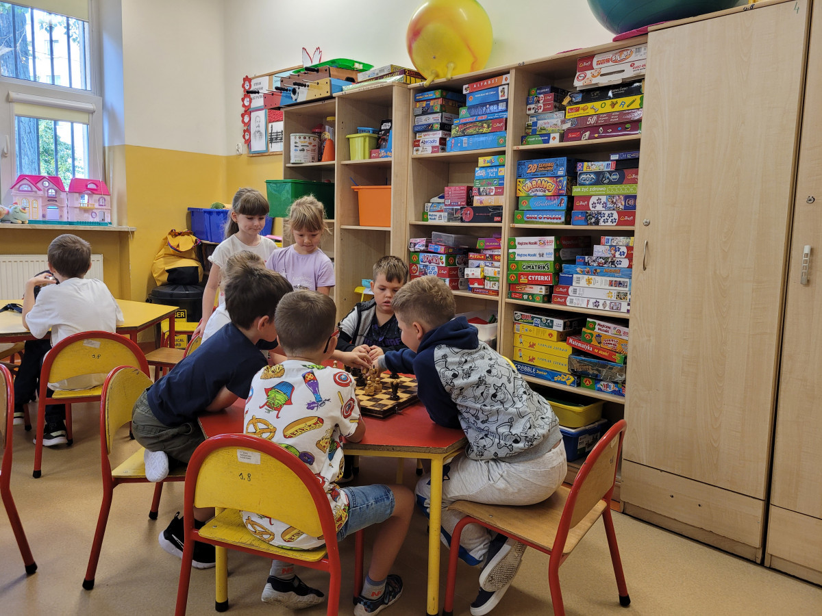 Za nami wakacje a teraz czas na naukę. Świetlica szkolna zaprasza wszystkie zapisane do niej dzieci w godzinach 6.30-17.00. Jak każdego roku będzie wesoło i ciekawie. Poznacie dużo różnych zabaw, będą zajęcia plastyczne, muzyczne, sportowe, będziecie mogli doskonalić swój język angielski, ale też poznacie język niemiecki i włoski. To tylko niektóre z naszych propozycji na ten rok szkolny. Jak widać na zdjęciach jesteście bardzo kreatywni, macie czas na spontaniczną zabawę, projekty, odpoczynek. Przecież do tego służy właśnie świetlica. Wszystkim uczniom życzymy pięknych chwil spędzonych przed i po zajęciach w świetlicy szkolnej.