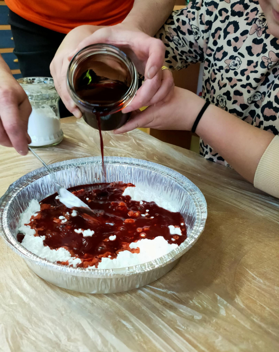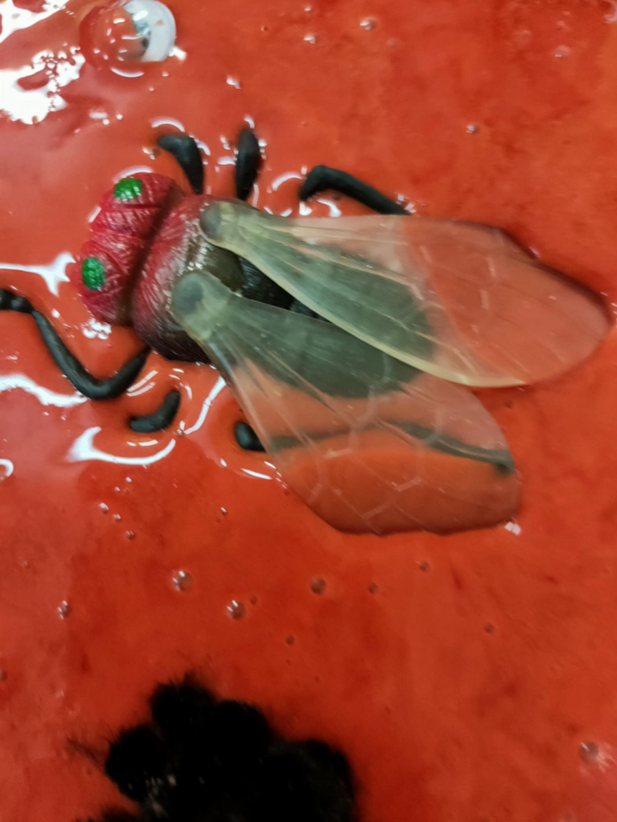 W ostatnim dniu października w świetlicy połączono zajęcia programu edukacyjnego na temat powstawania tęczy z czasem słynącym ze strachów, straszydeł i straszenia. Dzieci próbowały odpowiedzieć na pytanie, co jest potrzebne, aby zobaczyć tęczę na niebie. Przy pomocy szklanego naczynia wypełnionego wodą, lusterka i latarki szukały kolorowych smug światła na ścianie. Czasem pojawiały się w miejscach nieoczekiwanych, np. na szafce czy suficie. Najlepiej jednak tęcza była widoczna na białej kartce papieru, kiedy do eksperymentu użyto płyty CD. Bardzo efektownie wyglądały kolorowe półkola w miseczkach z mlekiem. Powstały też tęczowe duszki, które wprowadziły dzieci w świat stworzeń na miarę Halloween. Na koniec przygotowały przerażającą zupę. A zabawa sensoryczna polegająca na lepieniu nie tylko postaci, ale i historii rodem z horroru była tak przerażająca, że tylko Pani ze świetlicy wie jak bardzo... Niektóre źródła donoszą, że ludziom o słabych nerwach nie zaleca się podobnych doznań.